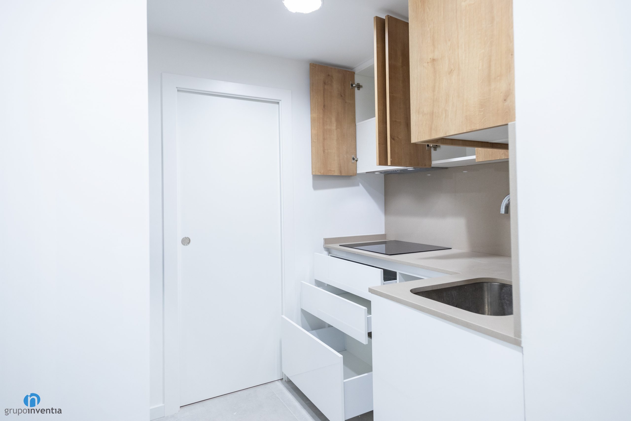A la cuina se situa en una estança pròpia i s’accedeix a través d’una porta corredissa. Es tracta d’un element molt útil per aprofitar al màxim l’espai disponible. A la seva dreta s’ha col·locat un moble de cuina amb forats a mida per a diversos electrodomèstics. Concretament pot equipar-se amb una nevera, un forn i un microones.