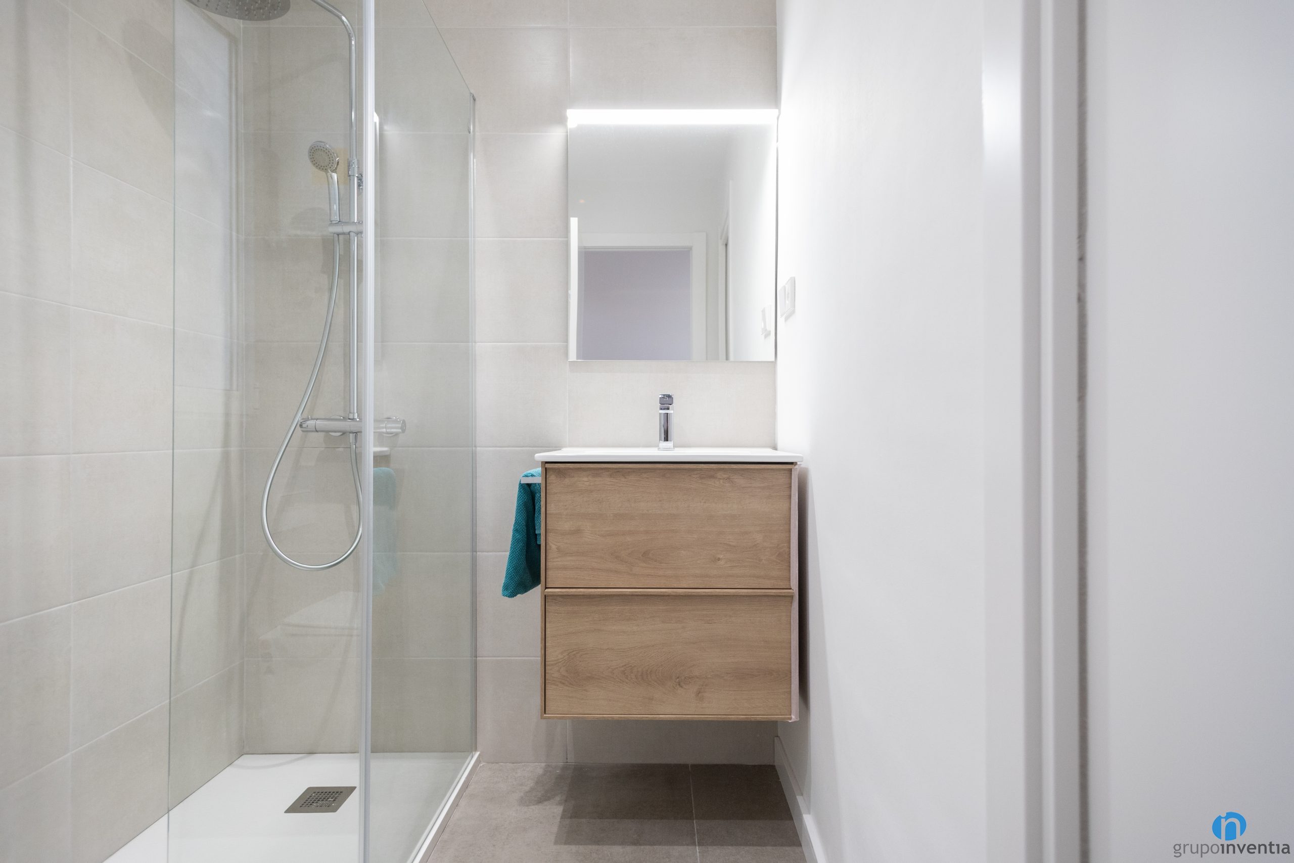 Pel disseny interior del bany s’ha apostat per un estil contemporani amb tons neutres. D’aquesta manera, les parets s’han enrajolat completament amb rajoles de to beix per generar un espai lluminós i de sensació àmplia. El nou terra és de rajoles grises i genera un bonic contrast de colors. Hem aconseguit dotar el bany d’un ambient agradable i fresc.