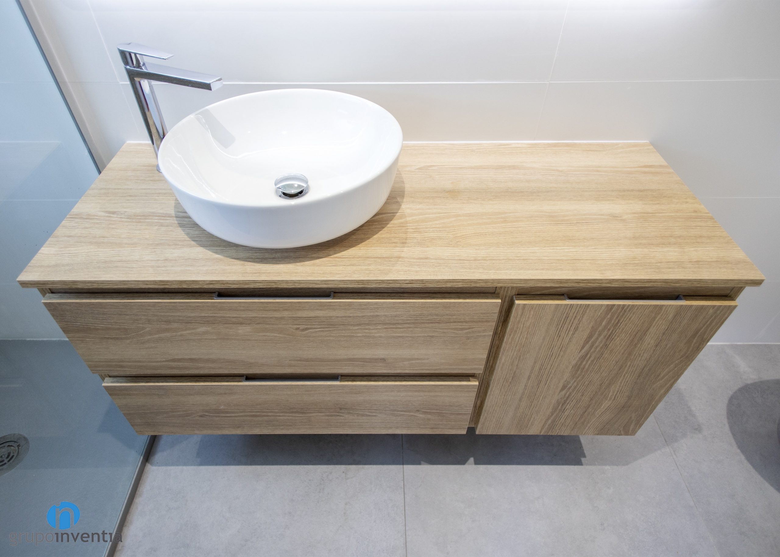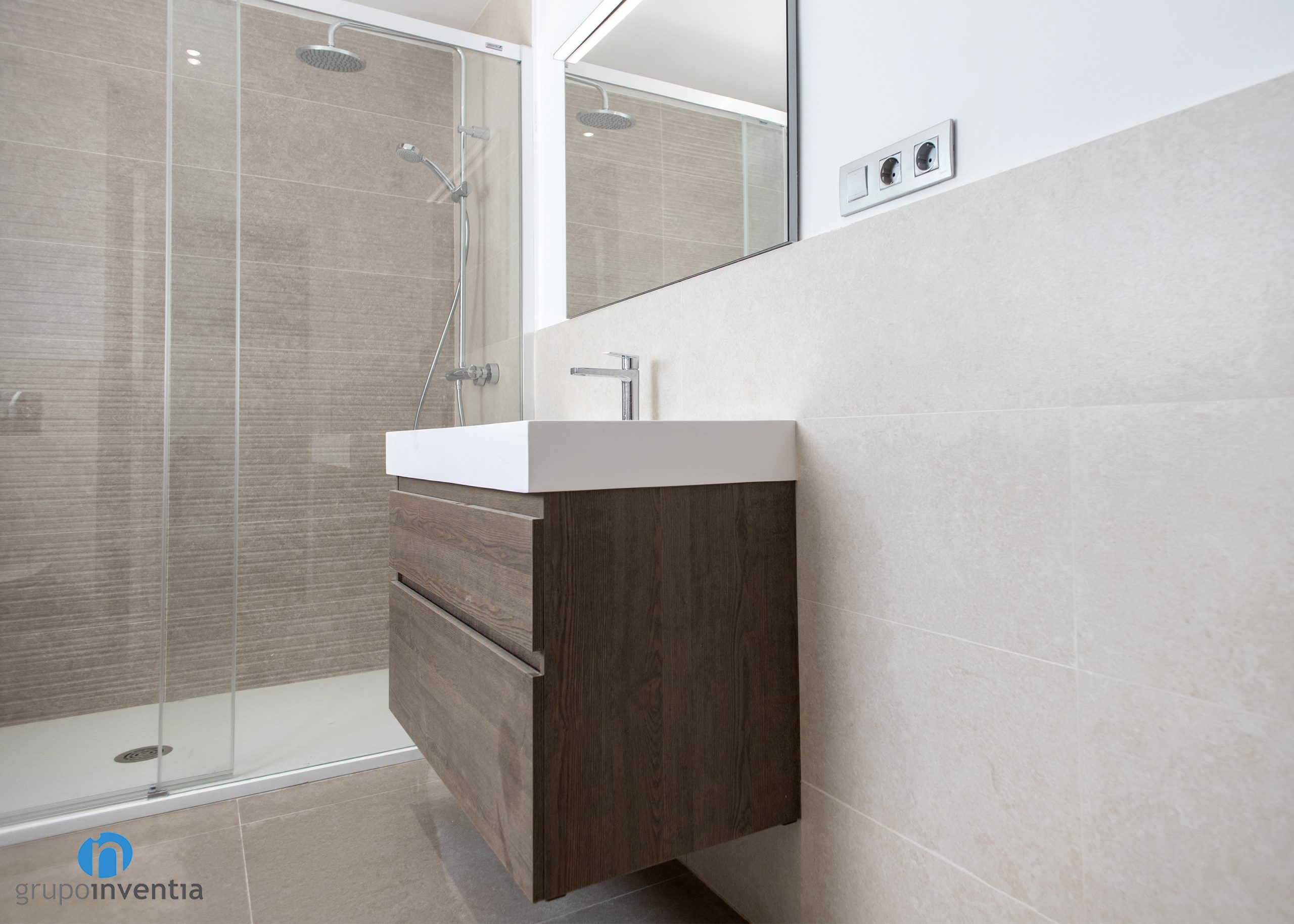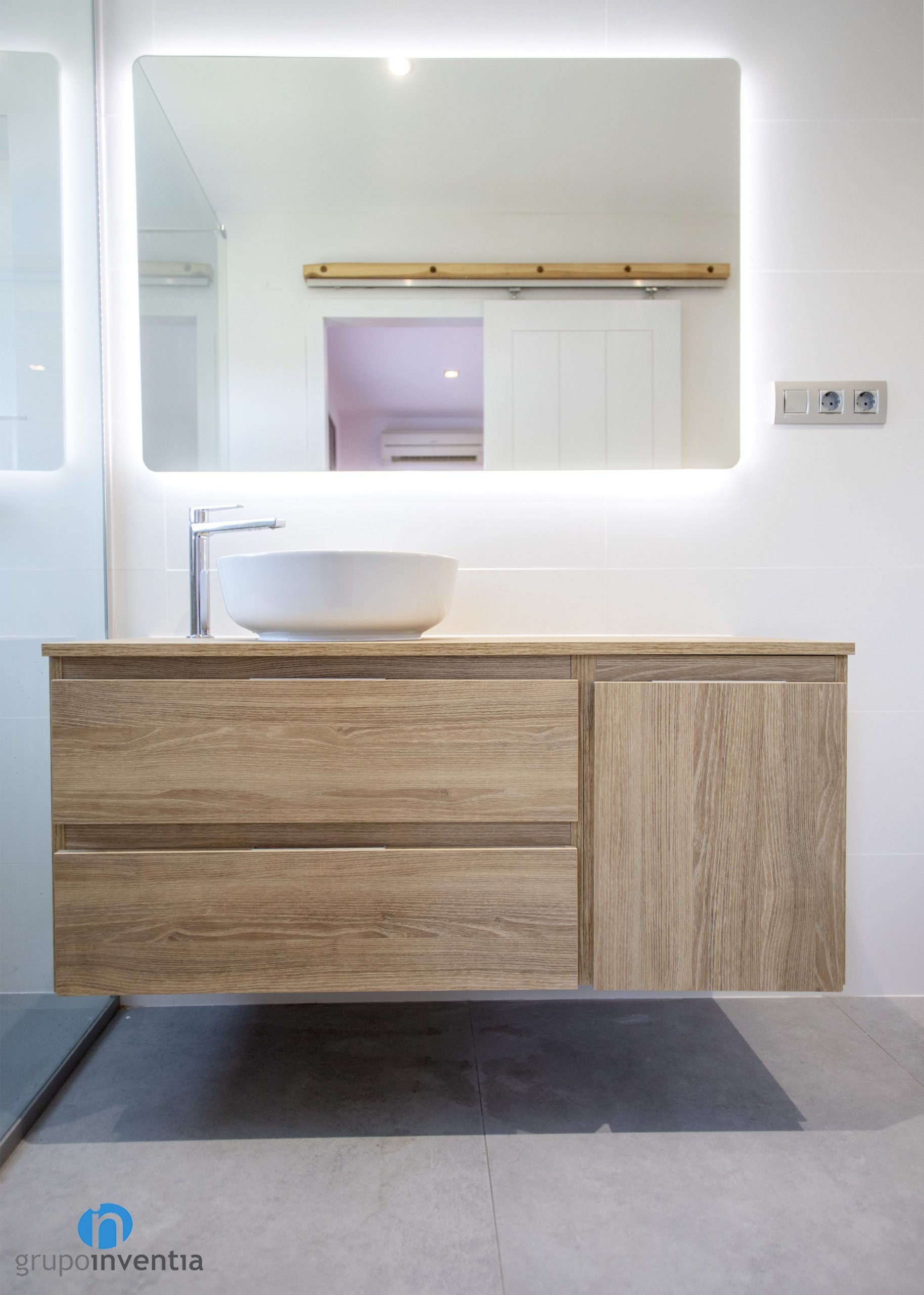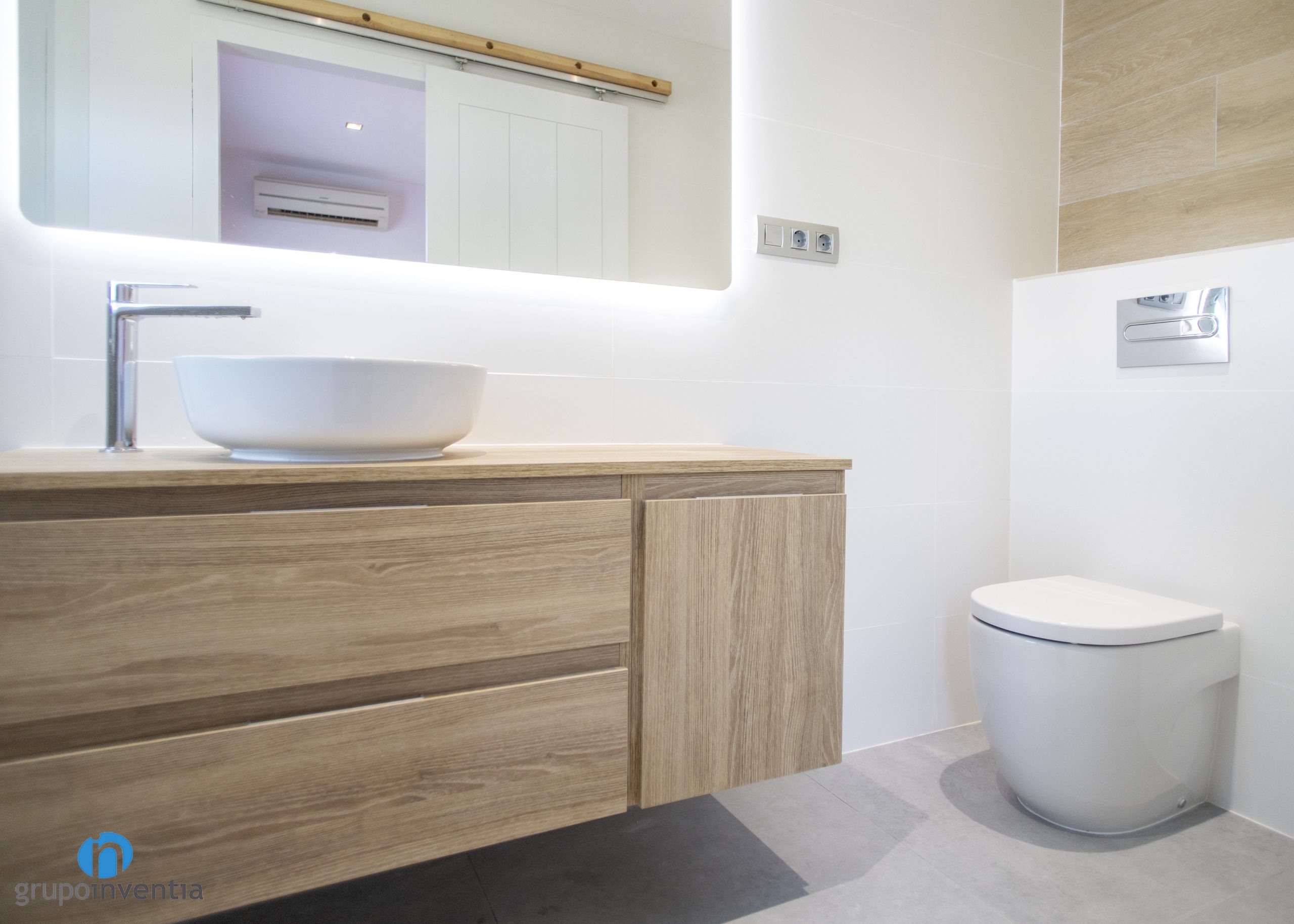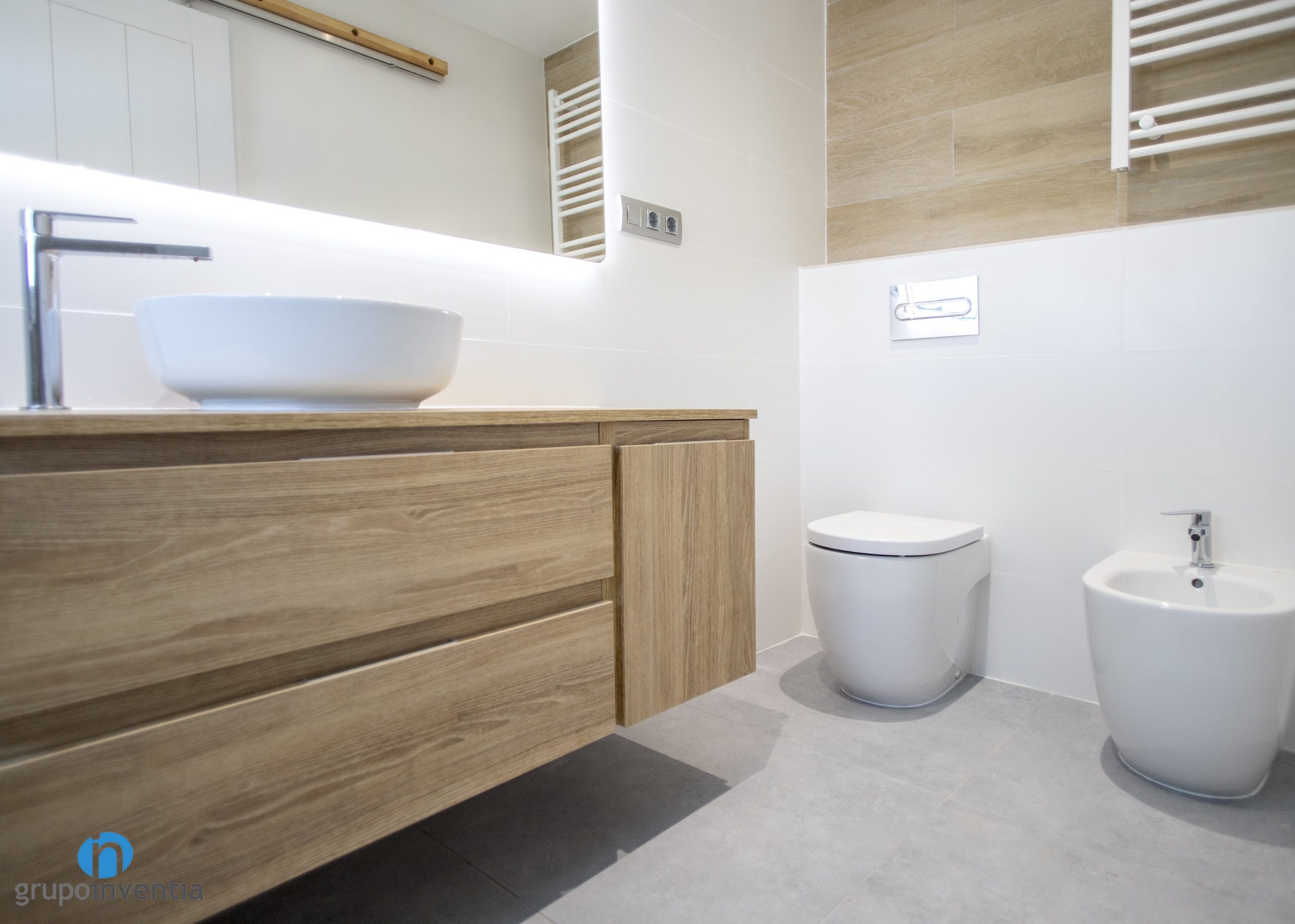 Per a la nova imatge de les tres cambres de banys s’ha seguit la línia decorativa general de l’habitatge. En ells es combina el color blanc a les rajoles i els acabats en fusta, tant en el mobiliari com en parets enrajolades.
