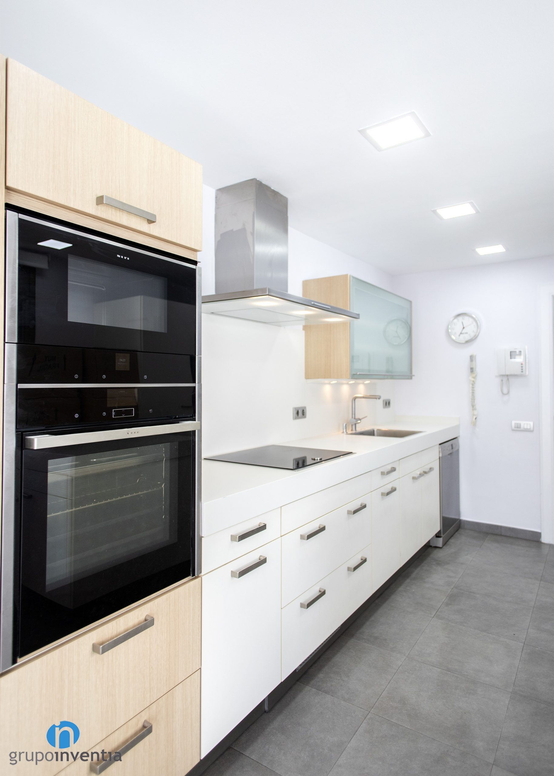 Una de les estances importants en qualsevol reforma integral és la cuina. Donat el seu ús diari ha d’oferir funcionalitat a través d’un equipament complet. En aquest cas la cuina se situa en una estança pròpia i de superfície àmplia. La seva distribució és lineal i ofereix una mobilitat perfecta a l’hora de fer ús d’ella.