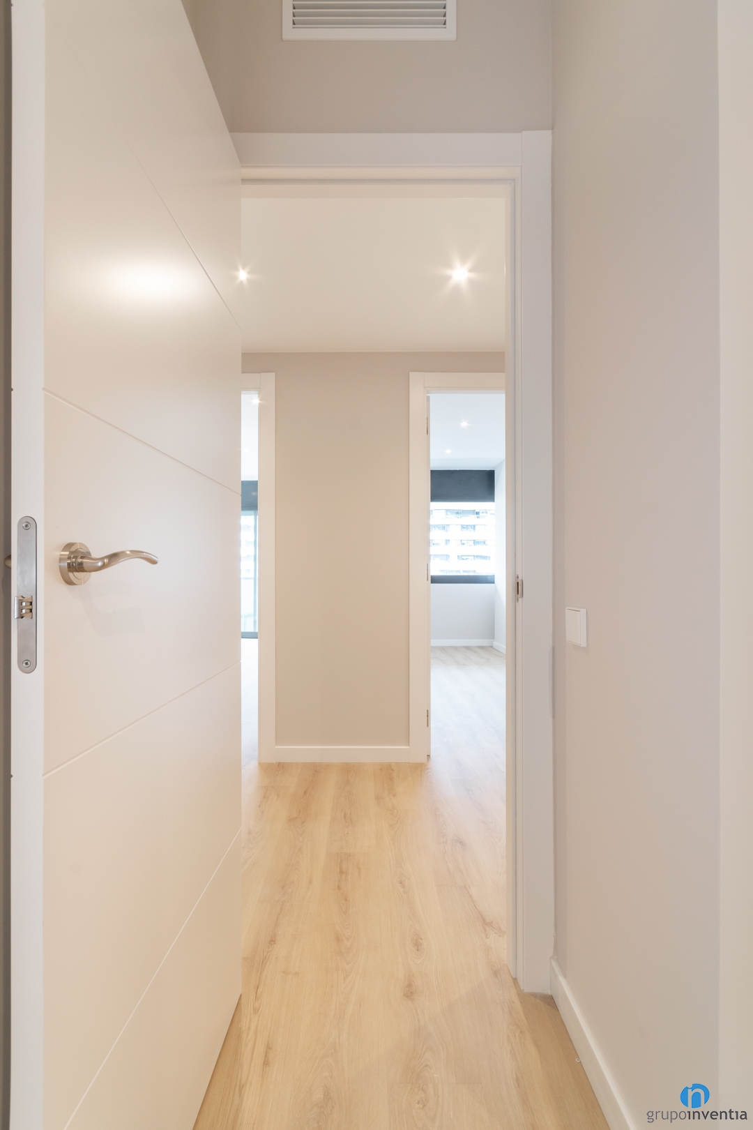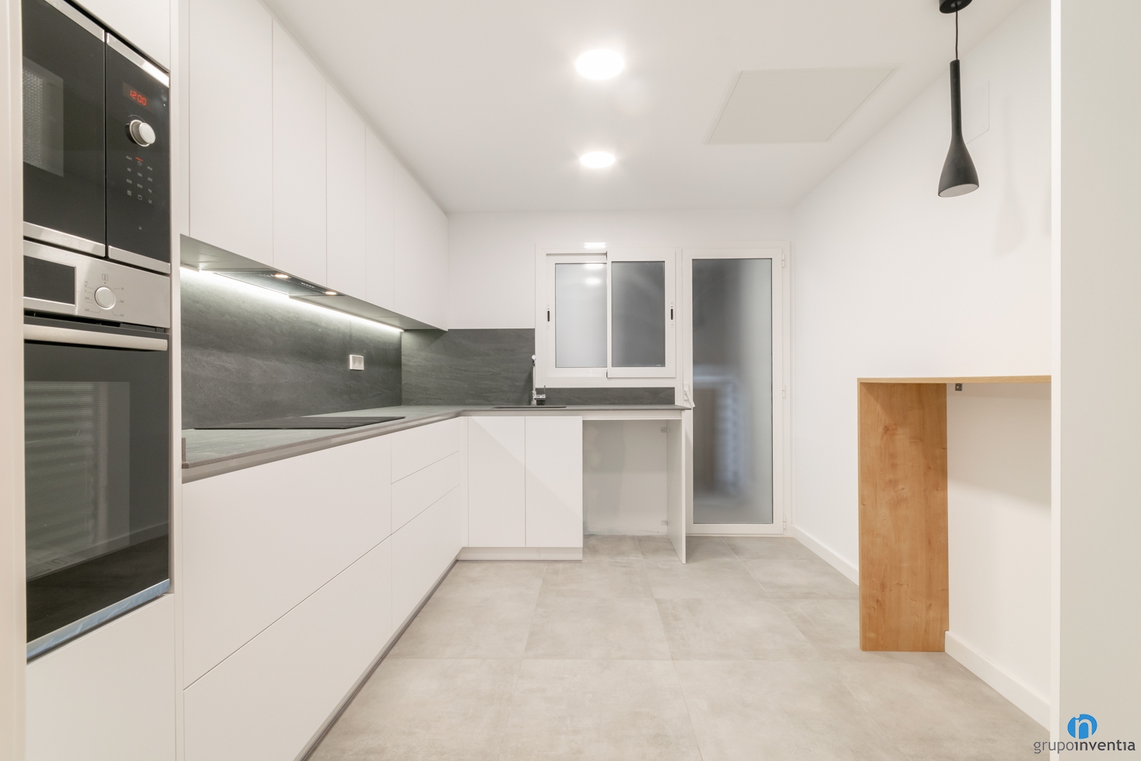 Així, s’aprofiten al màxim les entrades de llum natural i s’il·lumina cada racó del pis. Pel que fa a la reforma interior, també hem canviat les portes i els seus marcs i també els sòcols. Els hem col·locat tots de color blanc, generant un contrast agradable. Una altra millora en el nou disseny interior és el paviment.