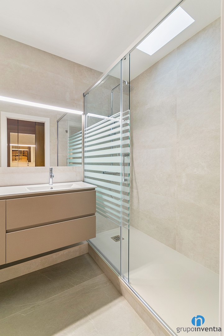 En el disseny interior s’ha optat per tonalitats neutres que generen ambients frescos i agradables, ideals per a espais d’ús diari. Els revestiments ceràmics en beix i els mobles suspesos creen una sensació d’amplitud i netedat visual. La il·luminació integrada als miralls afegeix un toc modern i millora la funcionalitat, aconseguint banys confortables i acollidors.