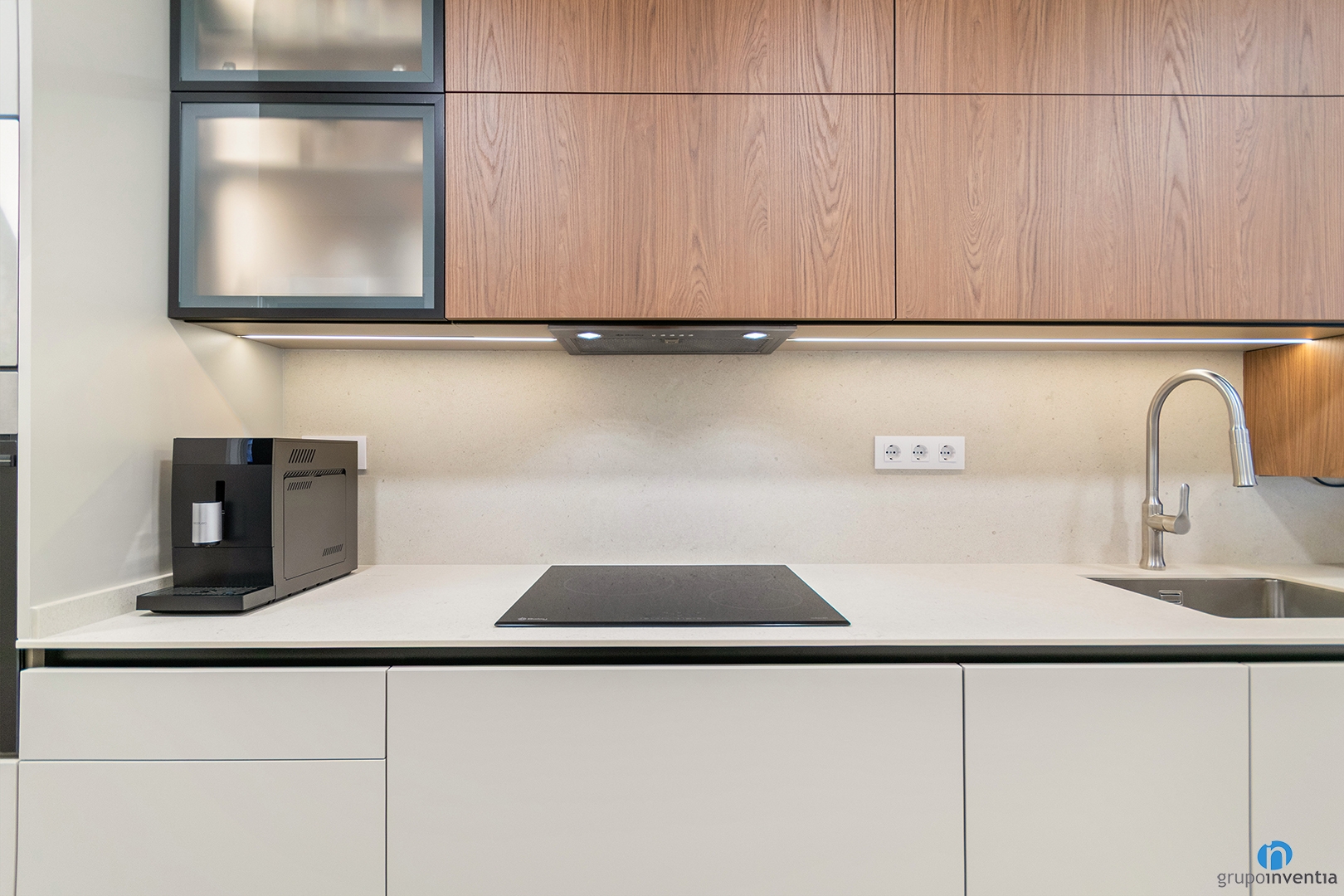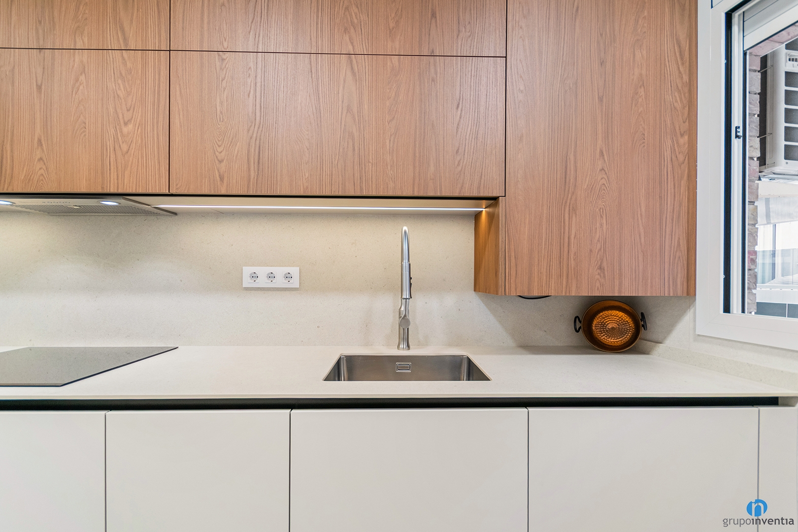 Pel que fa a la nova imatge, hem apostat per un disseny contemporani en què predominen els tons clars i els acabats llisos. Els mobles en blanc i fusta aporten calidesa, mentre que l’encimera i el frontal en tonalitats neutres potencien la lluminositat. Tot plegat dona com a resultat una cuina moderna, elegant i perfectament integrada en el conjunt de l’habitatge.