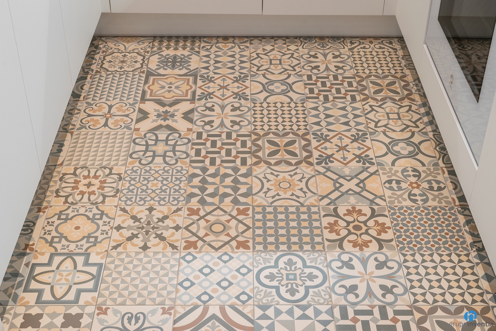 El paviment també és important en aquesta reforma de cuina a Sabadell. Hem col·locat un terra estil hidràulic que aporta molta personalitat al disseny de cuina. A més, és una superfície fàcil de netejar i mantenir.
