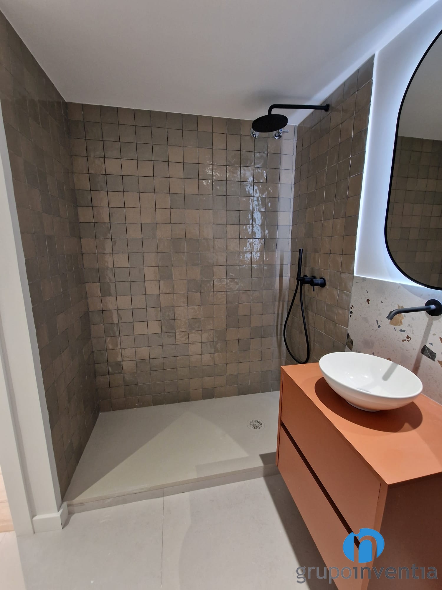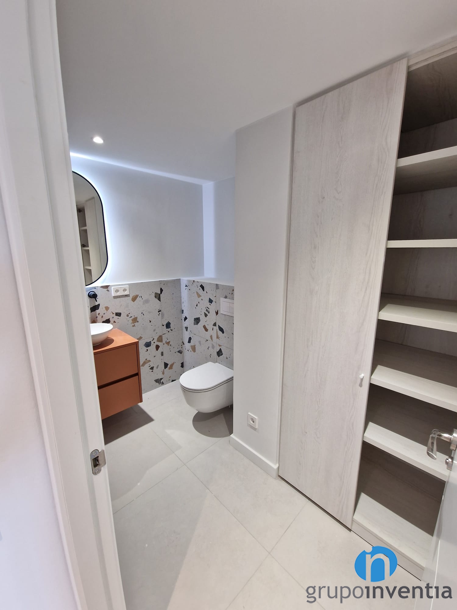 Com hem esmentat també ens hem encarregat de la reforma de bany de cortesia. S’ubica en un espai ampli i s’ha pogut equipar completament. Ara disposa d´un lavabo amb moble d´emmagatzematge, un vàter flotant i un ampli plat de dutxa. Una cambra de bany que respon a les necessitats actuals.