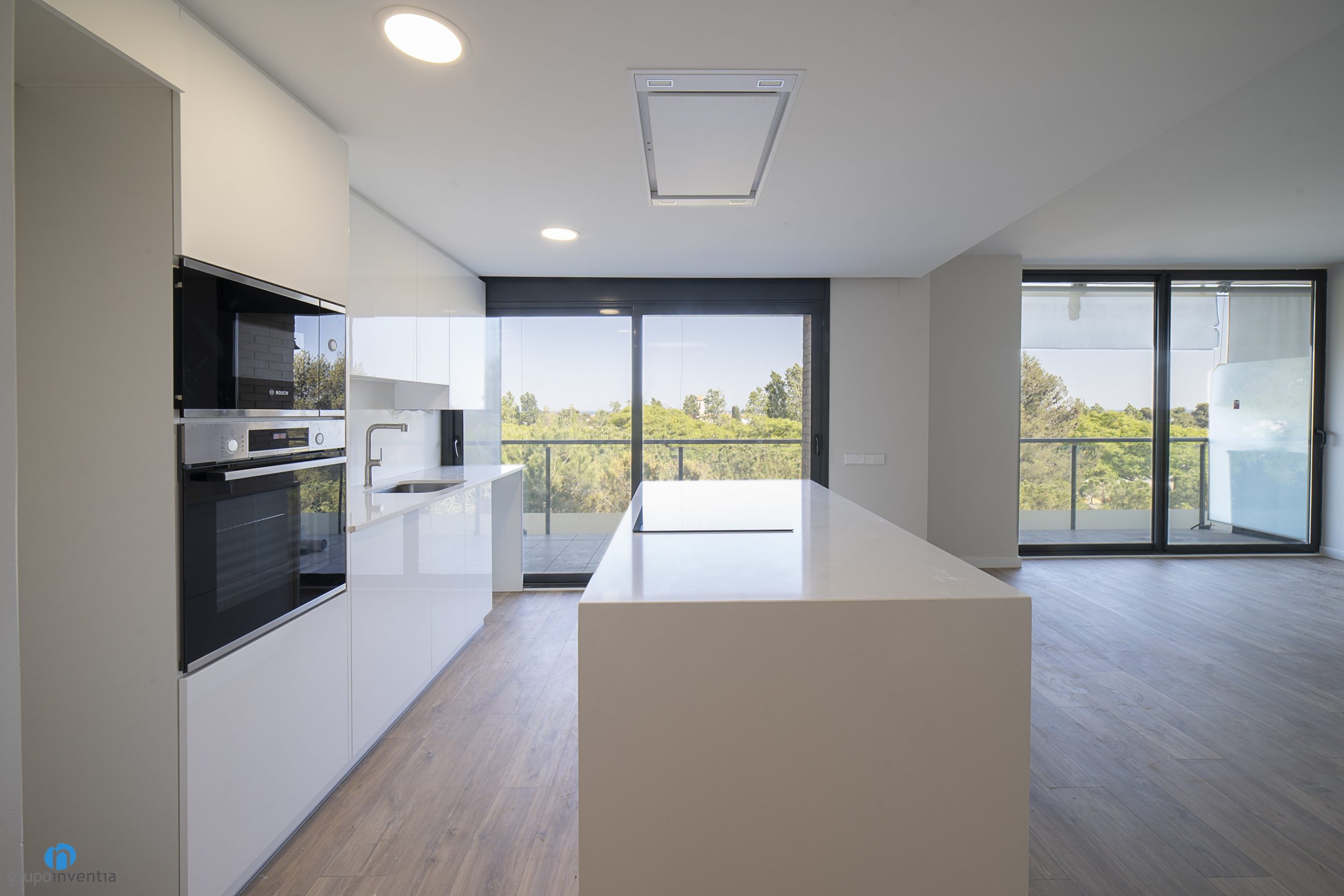 La nova cuina és un espectacle que s’integra perfectament a la imatge global de tot l’habitatge. Aquesta cuina és oberta al saló i compta amb una illa de cuina que amplia la superfície de suport i de treball. També és el lloc on s’ha instal·lat la placa vitroceràmica. Alhora ofereix capacitat d’emmagatzematge a la part inferior i també funciona com a barra d’esmorzar.