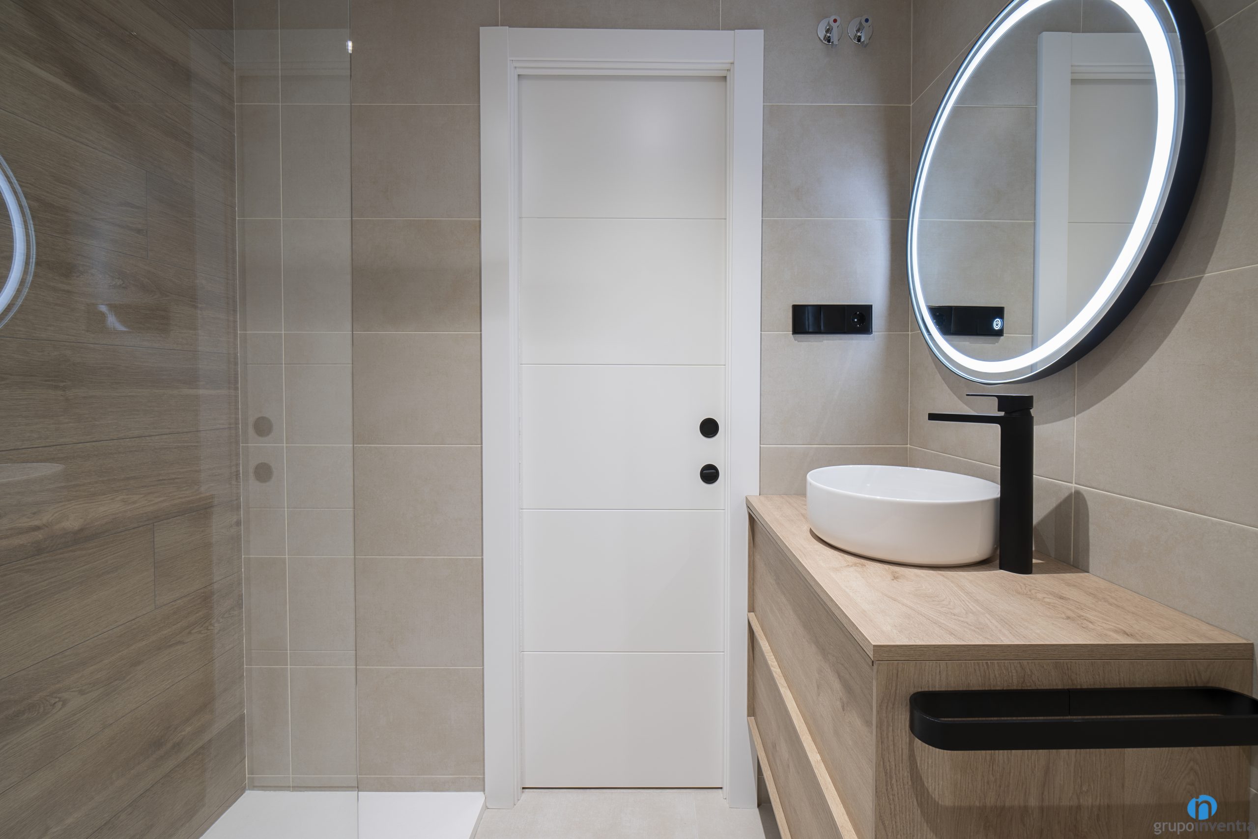 Per al disseny dels banys s’han fet servir diferents acabats, tot i que s’ha seguit una mateixa línia decorativa. Les parets s’han enrajolat amb rajoles de tons neutres i s’han generat dos espais amb un ambient molt agradable. En una de les cambres de bany s’ha fet servir un to beix i l’altre més grisenc.