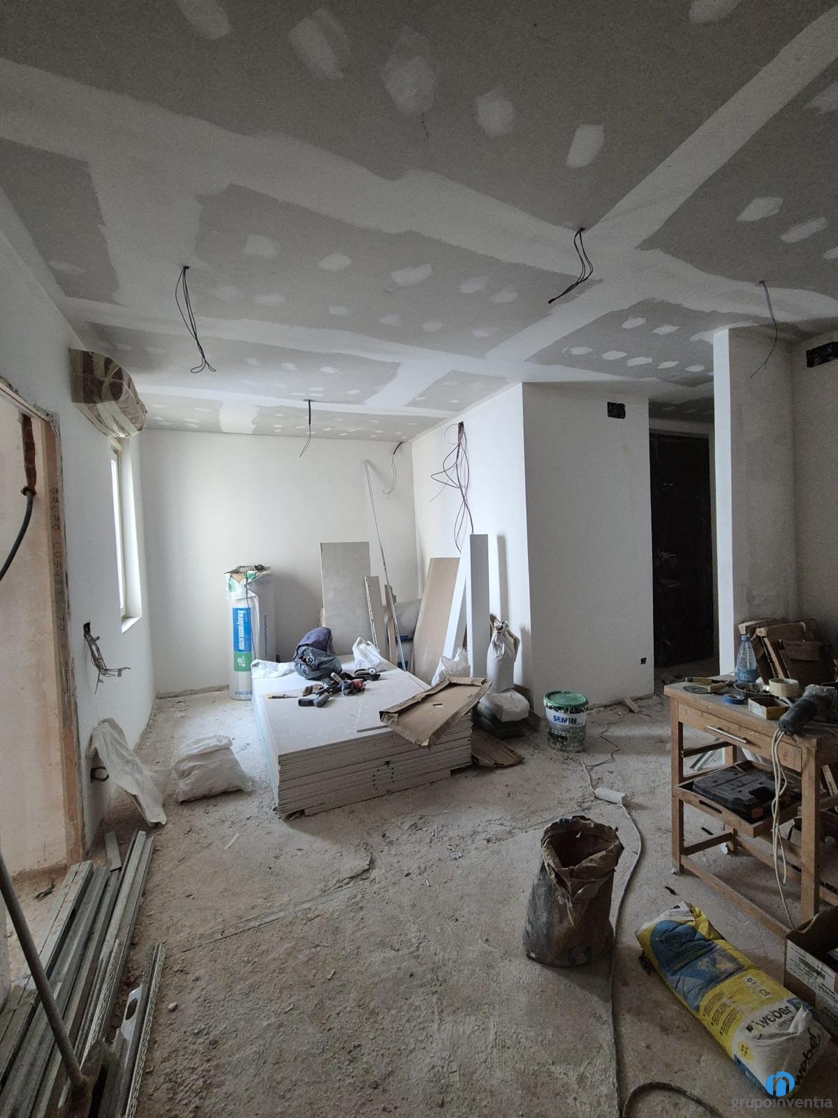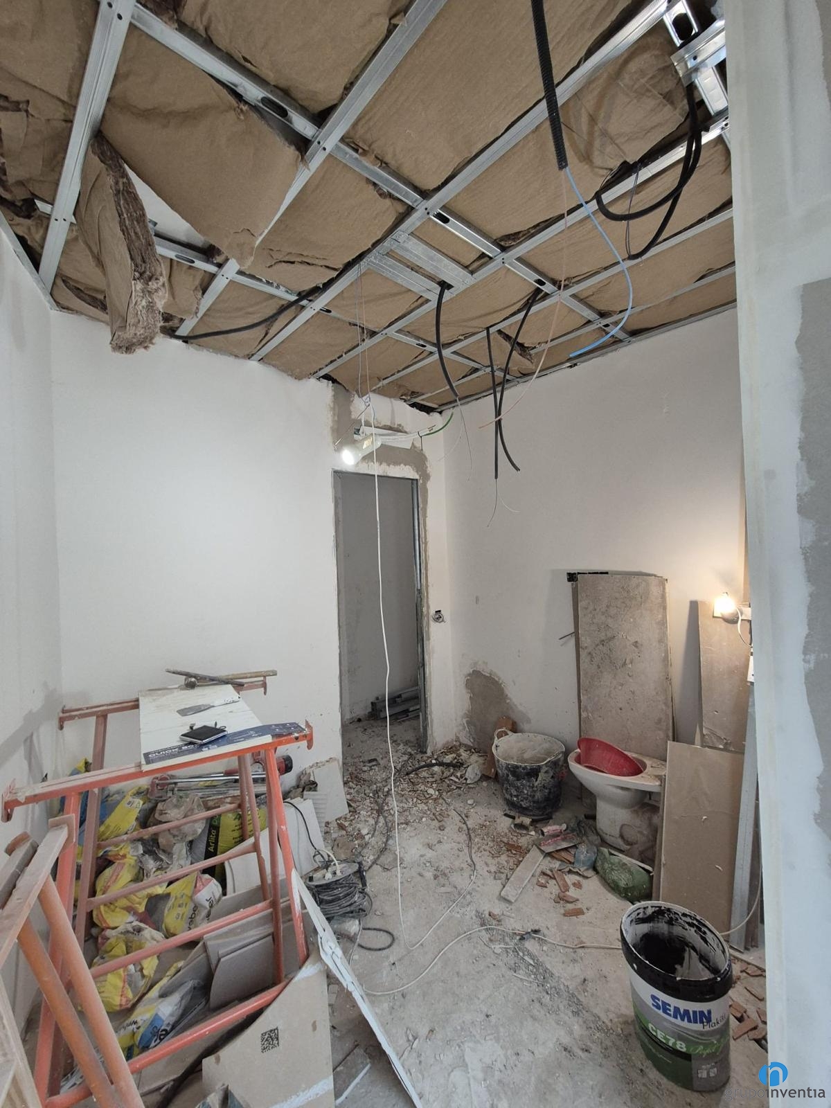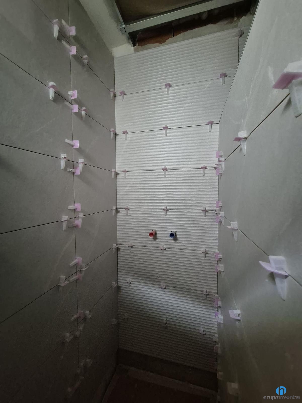A les imatges del working progress s’aprecia que és un pis molt lluminós i amb estades àmplies. Ens trobem en plena feina d’allisat de parets i col·locació de sostres. En els propers dies iniciarem el procés de col·locació de terra. A dia d’avui també hem començat a enrajolar la cambra de bany. S’intueix una reforma de bany amb un disseny elegant i amb tons neutres.