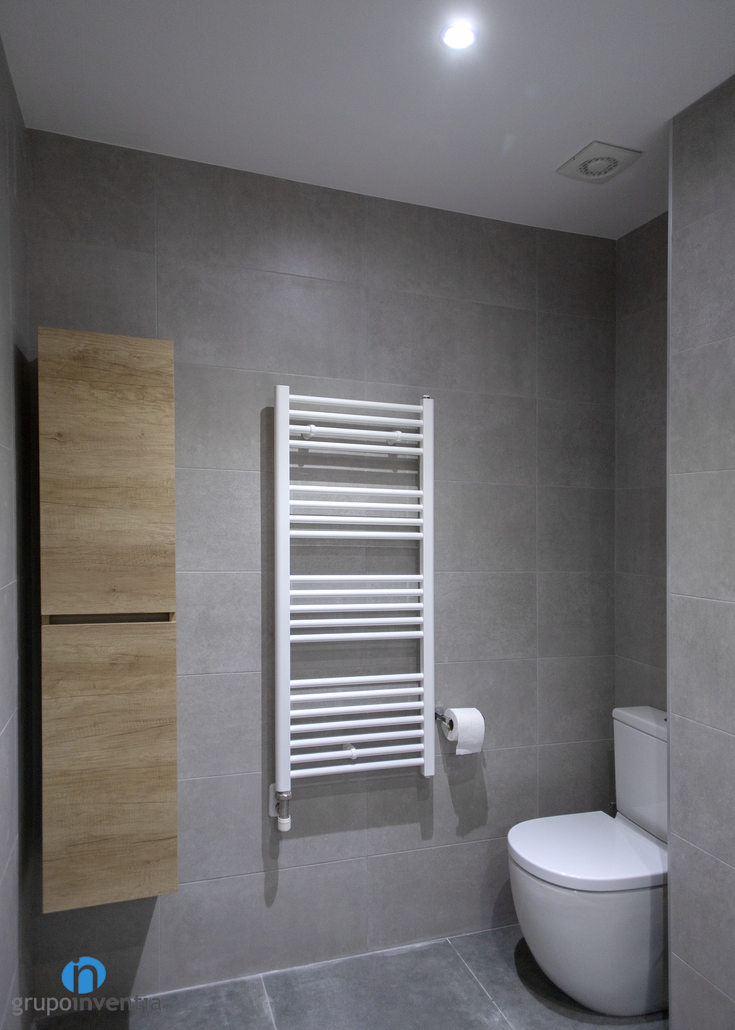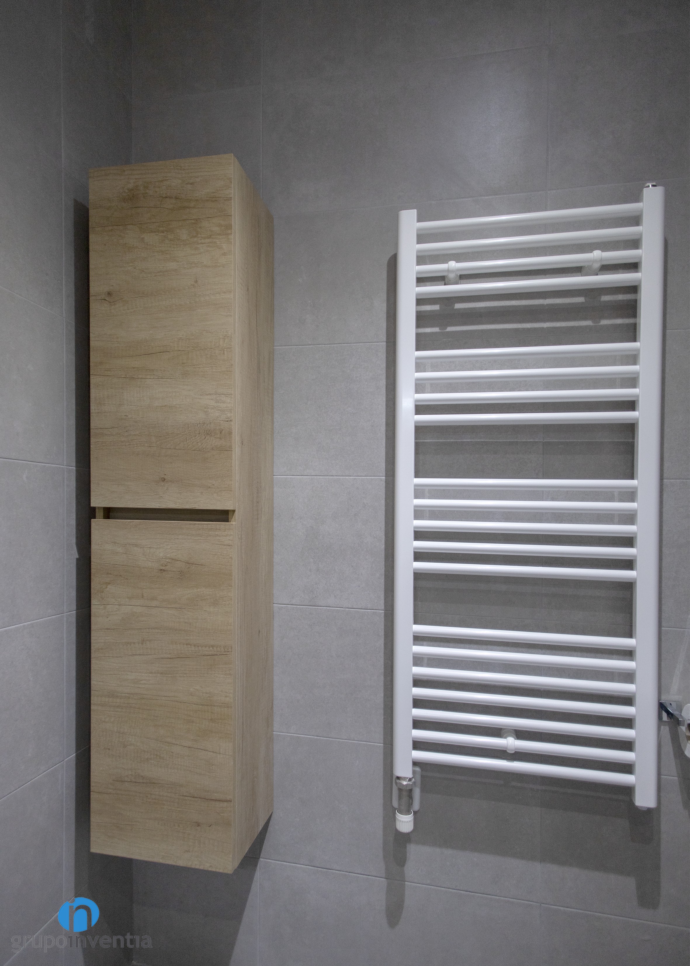 Amb això, el nou equipament sanitari es compon per un lavabo, amb moble d’emmagatzematge incorporat, un vàter i una banyera. Al seu torn, també es va instal·lar un radiador de paret, amb funció de seca tovalloles, i un armari per ampliar l’emmagatzematge de l’estança.