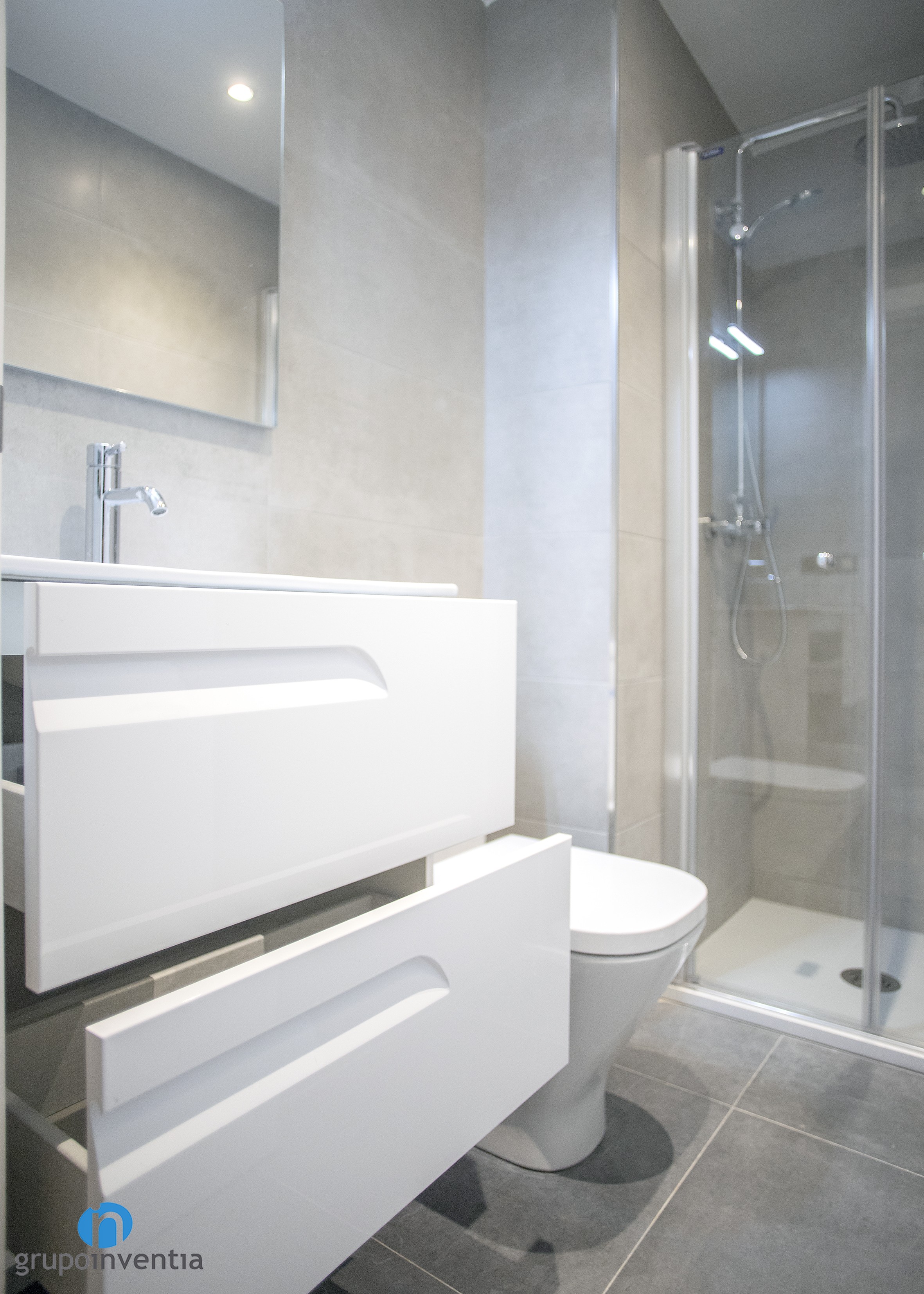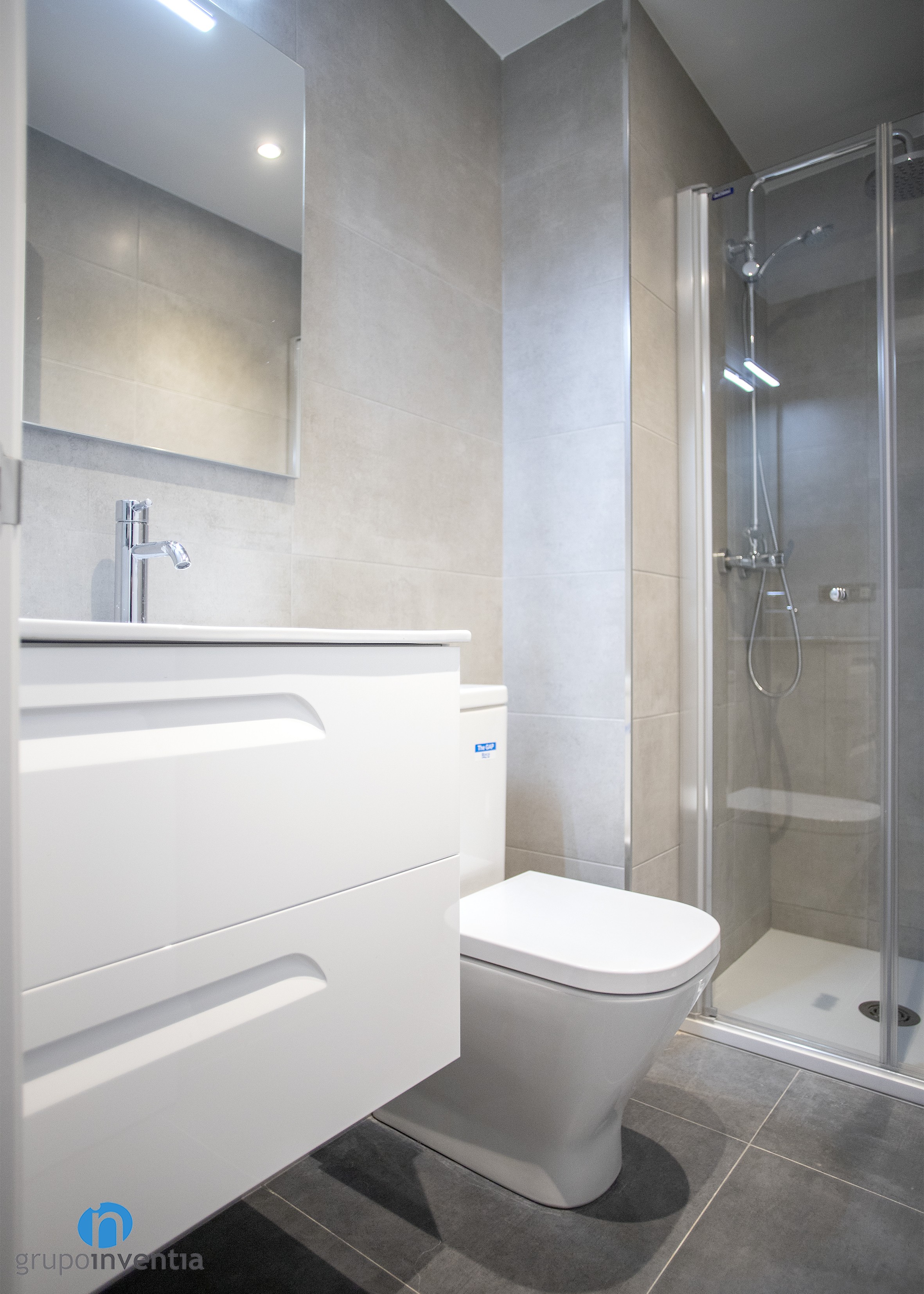 L’equipament sanitari es va renovar instal·lant un nou lavabo amb moble d’emmagatzematge incorporat, un vàter i un plat de dutxa. Després de la reforma de bany l’estança està a punt per oferir les millors prestacions i funcionalitat en el seu ús.