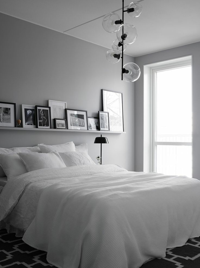 Que el blanco este presente en un dormitorio es algo habitual, ya que es el color indicado para la finalidad que busca esta estancia. Pero esto no aleja la posibilidad de combinarlo con otro color. En este caso nos decantamos por pintar dos paredes de blanco y dos paredes de gris, en un tono suave o medio.