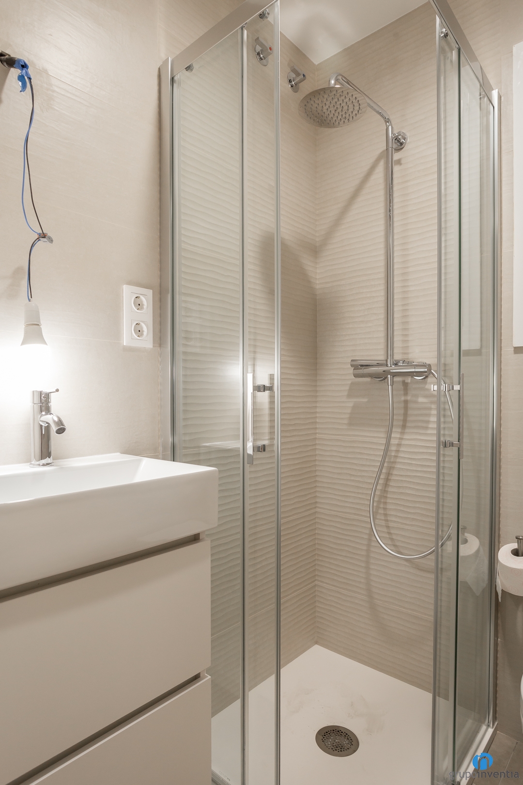 For the new bathroom image, we opted for a fresh design that enhances lightness. In this case we used beige tiles to tile the walls. In the same way, we have placed some tiles of the same tone to achieve a homogeneous image and enhance its visual breadth.