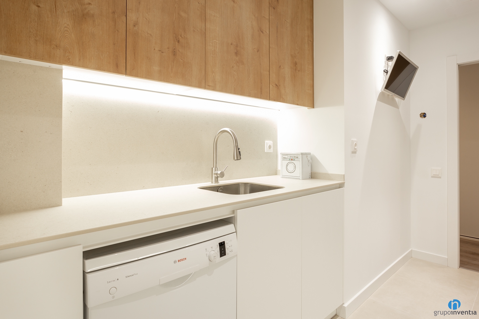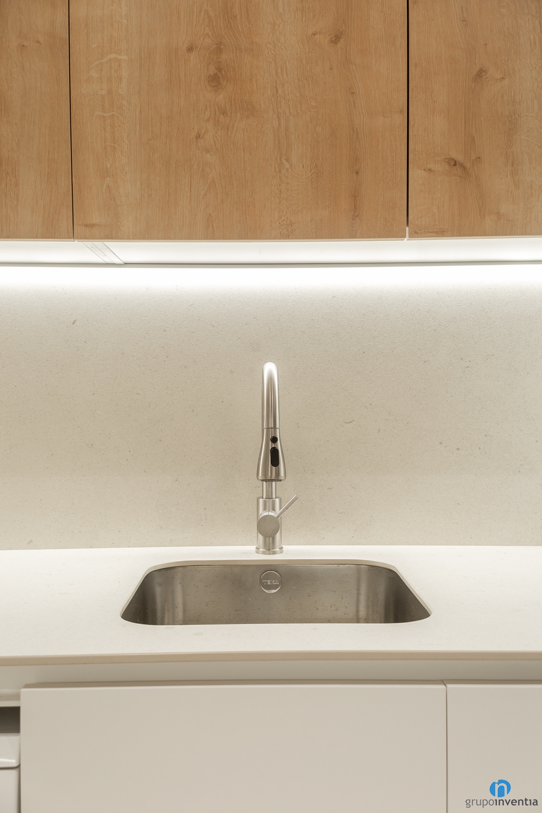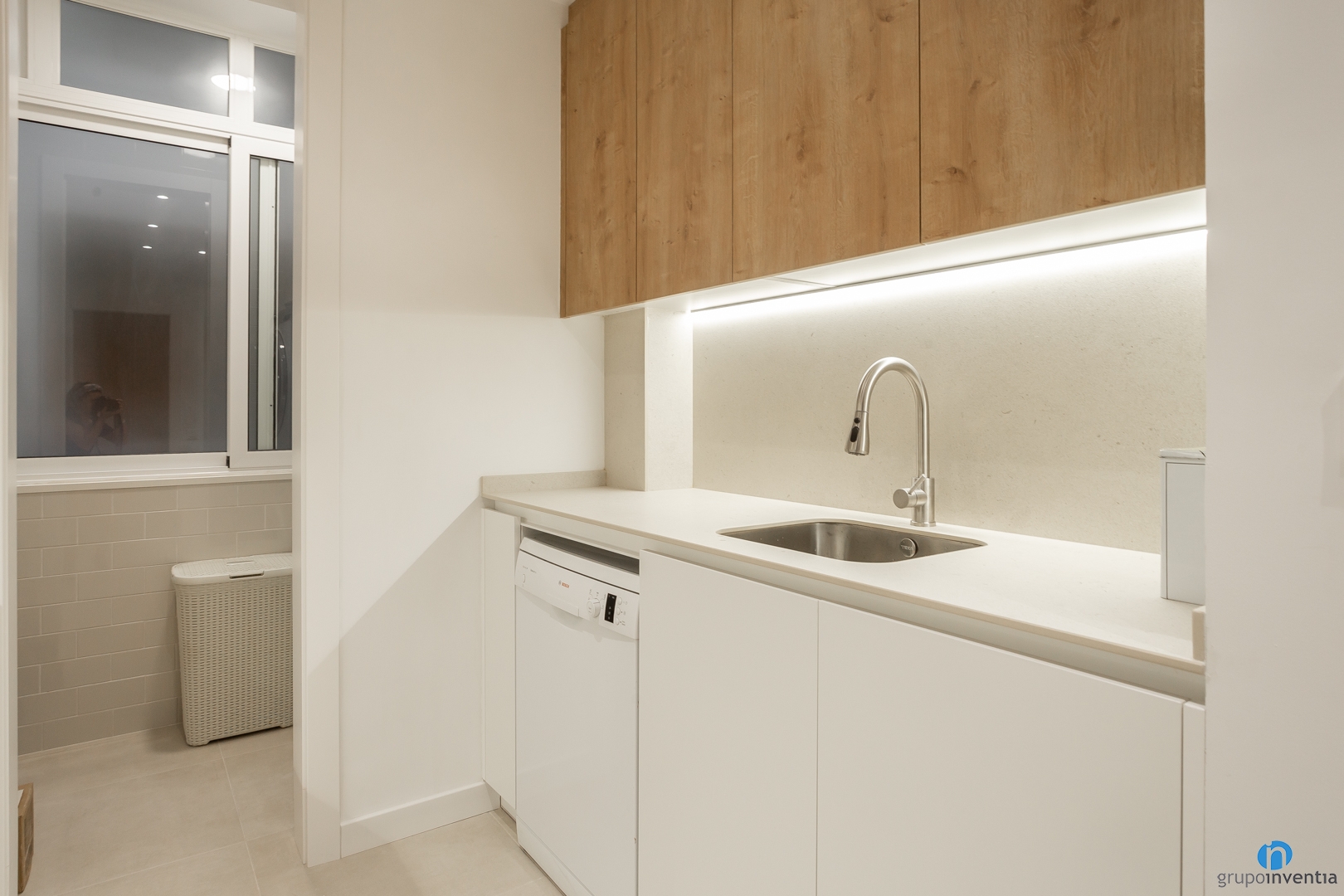 At the same time, it is equipped with a sink and in the lower part we have integrated the dishwasher. Another of the improvements we have applied in this kitchen renovation is to expand the storage capacity. Both the lower and upper part of the counters have drawers and cupboards for this task.