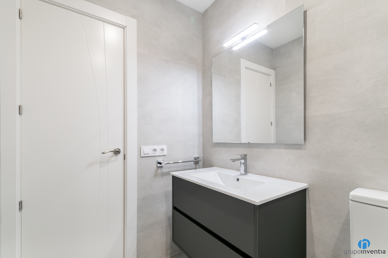 We tiled the walls with light gray tiles, the same as the new floor tiles. To generate contrast, the tiles on the shower wall are dark grey. Thanks to this, we have enhanced the brightness and visual breadth of the bathroom. They are two ideal characteristics for a daily space.