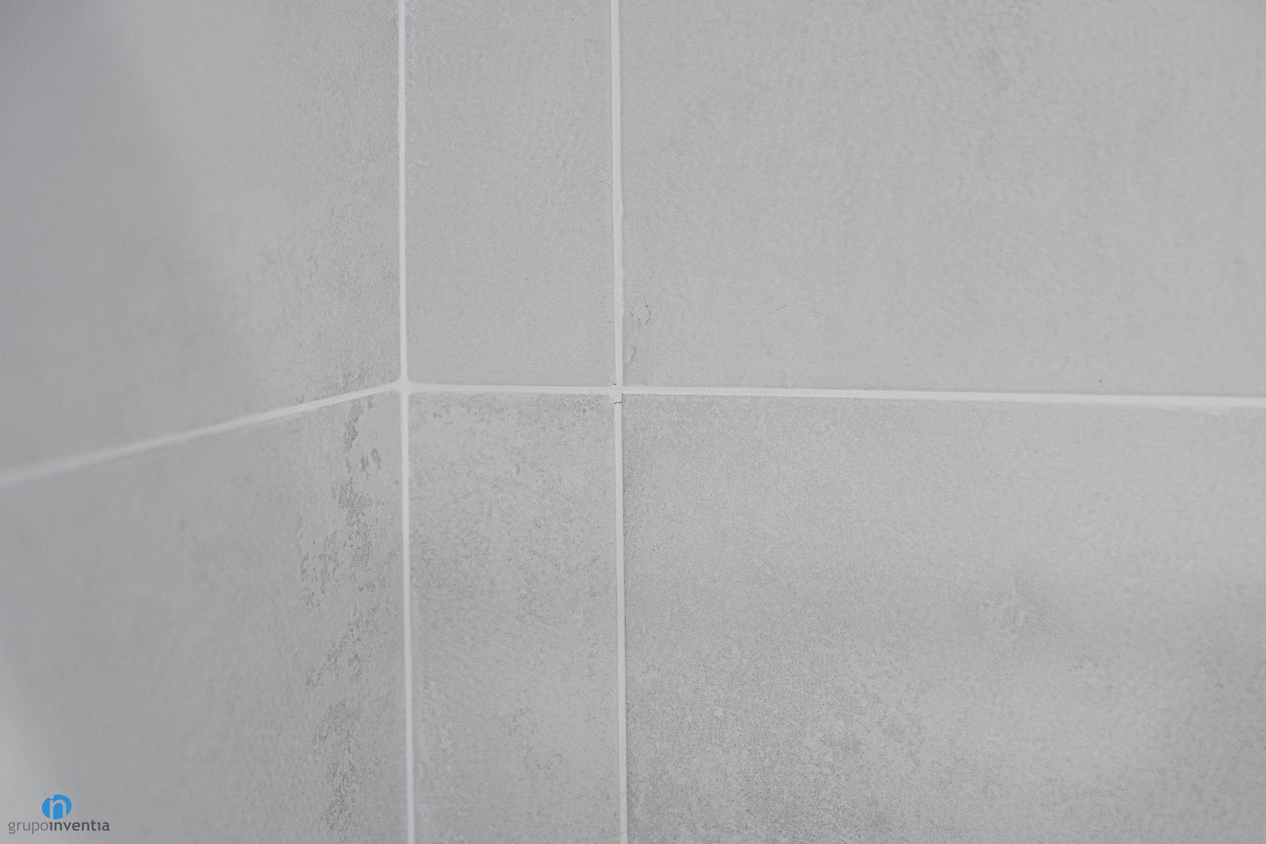 The walls have been completely tiled. For this, two types of tiles with a soft gray finish have been used. In this way a bathroom has been obtained in which the light can reach each one of its corners. For the new bathroom floor, tiles with the same finish have also been chosen. With this choice the image is completely homogeneous.
