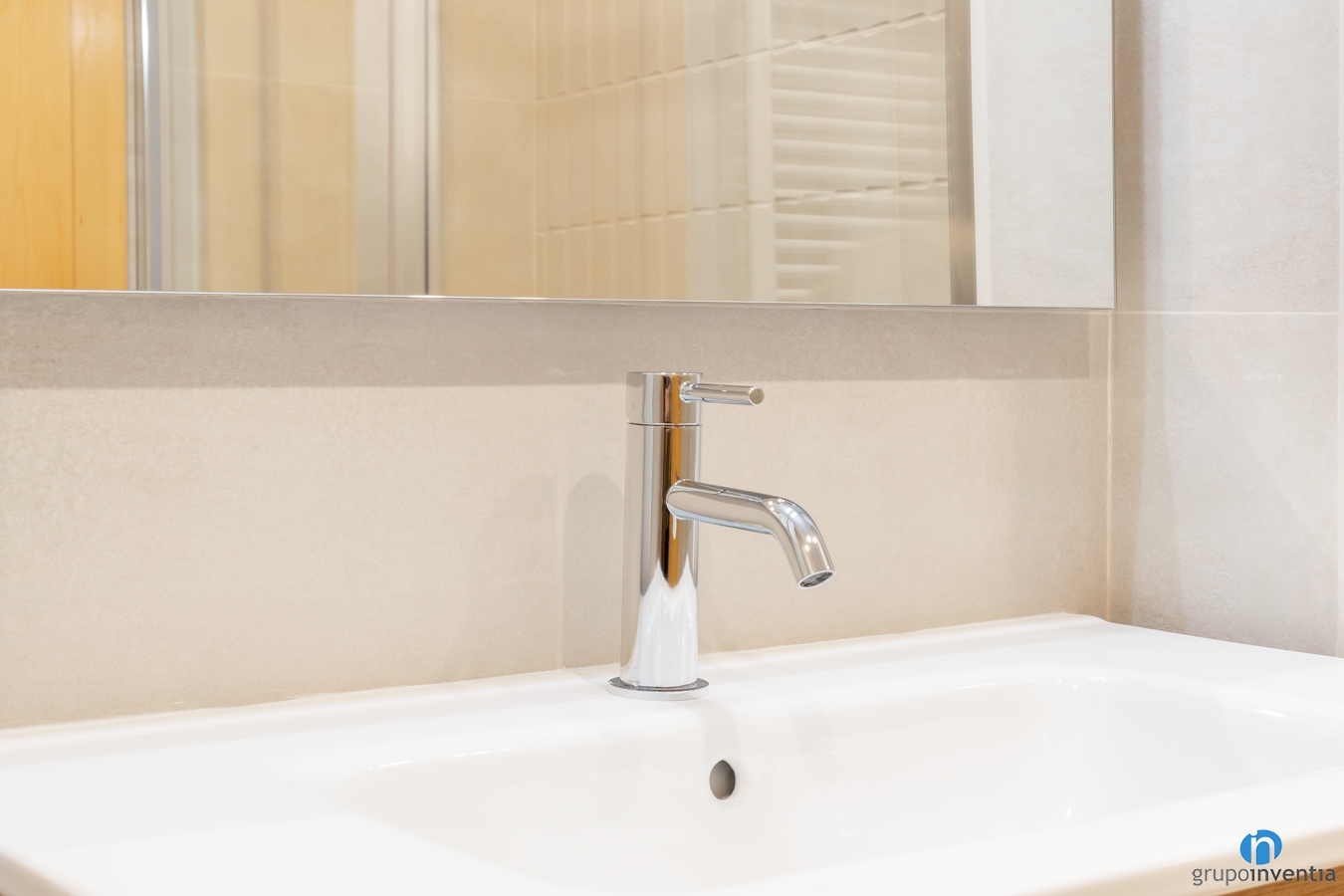 In this way we have completely tiled the walls with beige tiles. It is a perfect shade for the light to spread evenly to all corners. At the same time, the floor tiles are also the same color to achieve a homogeneous image throughout the bathroom.