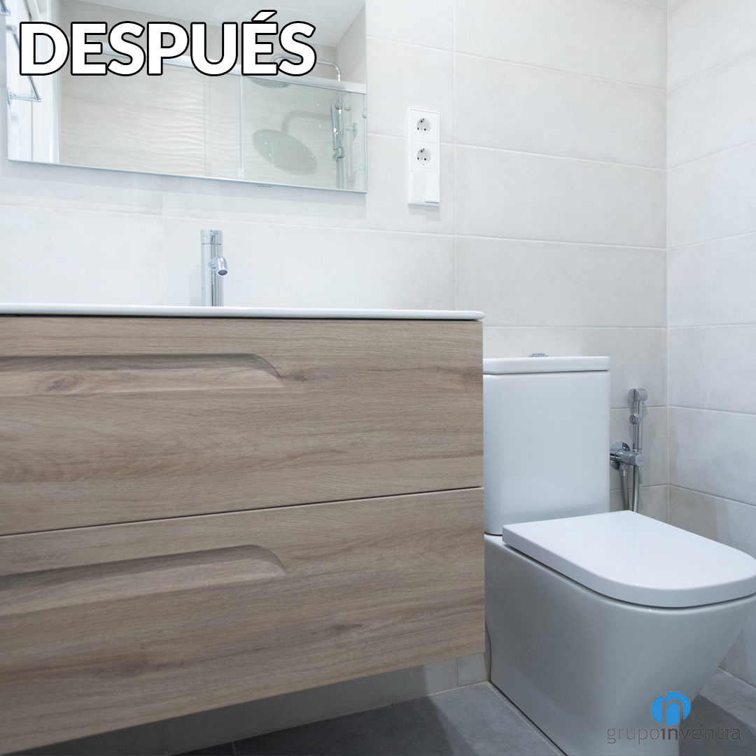 For the bathrooms, a decorative line similar to that of the rest of the house has been followed. The walls have been tiled with beige tiles. This creates a pleasant atmosphere in a space of daily use. In turn, the sanitary equipment has been completely renewed. In this bathroom renovation, a washbasin with storage unit, a toilet and a practical shower tray have been installed.