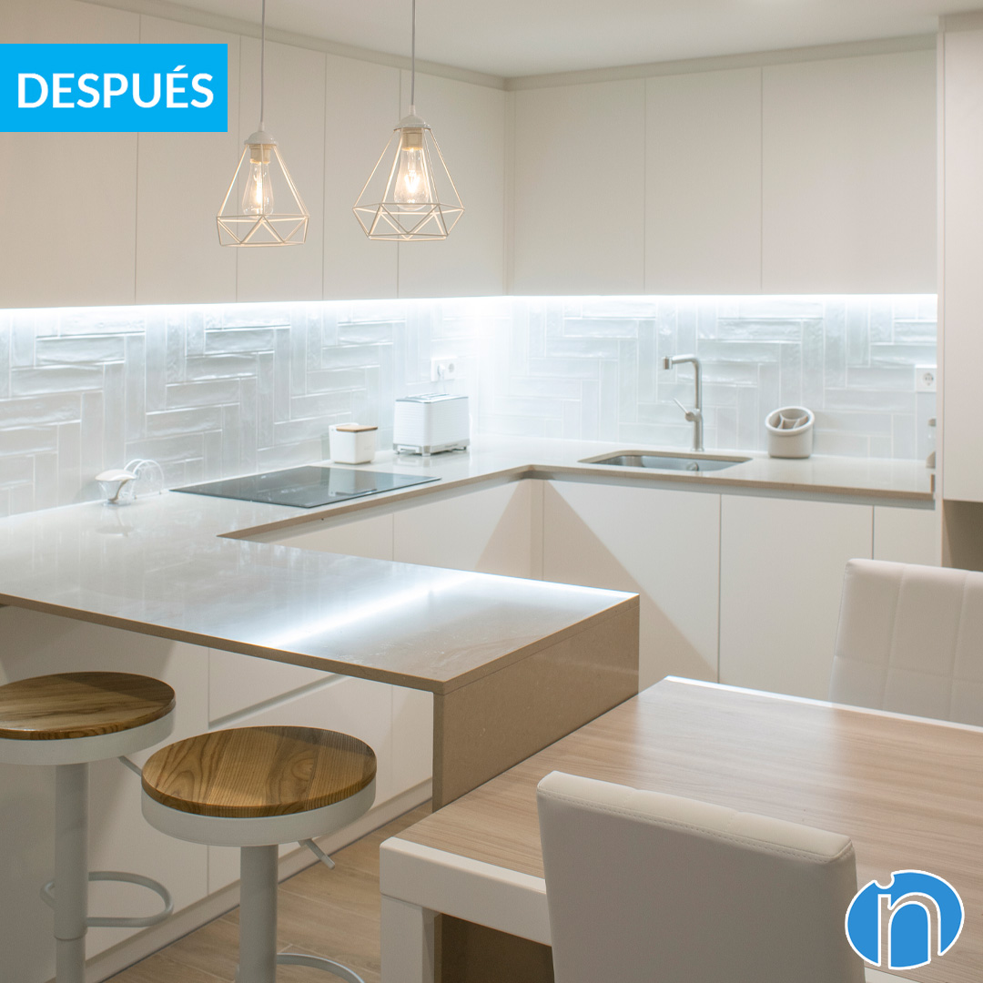 Now the kitchen and the general image are very different from the original state. In the following video you can see the before and after of the renovation. To find out more about our work you can follow us on our social networks. Daily updates with real and own projects.