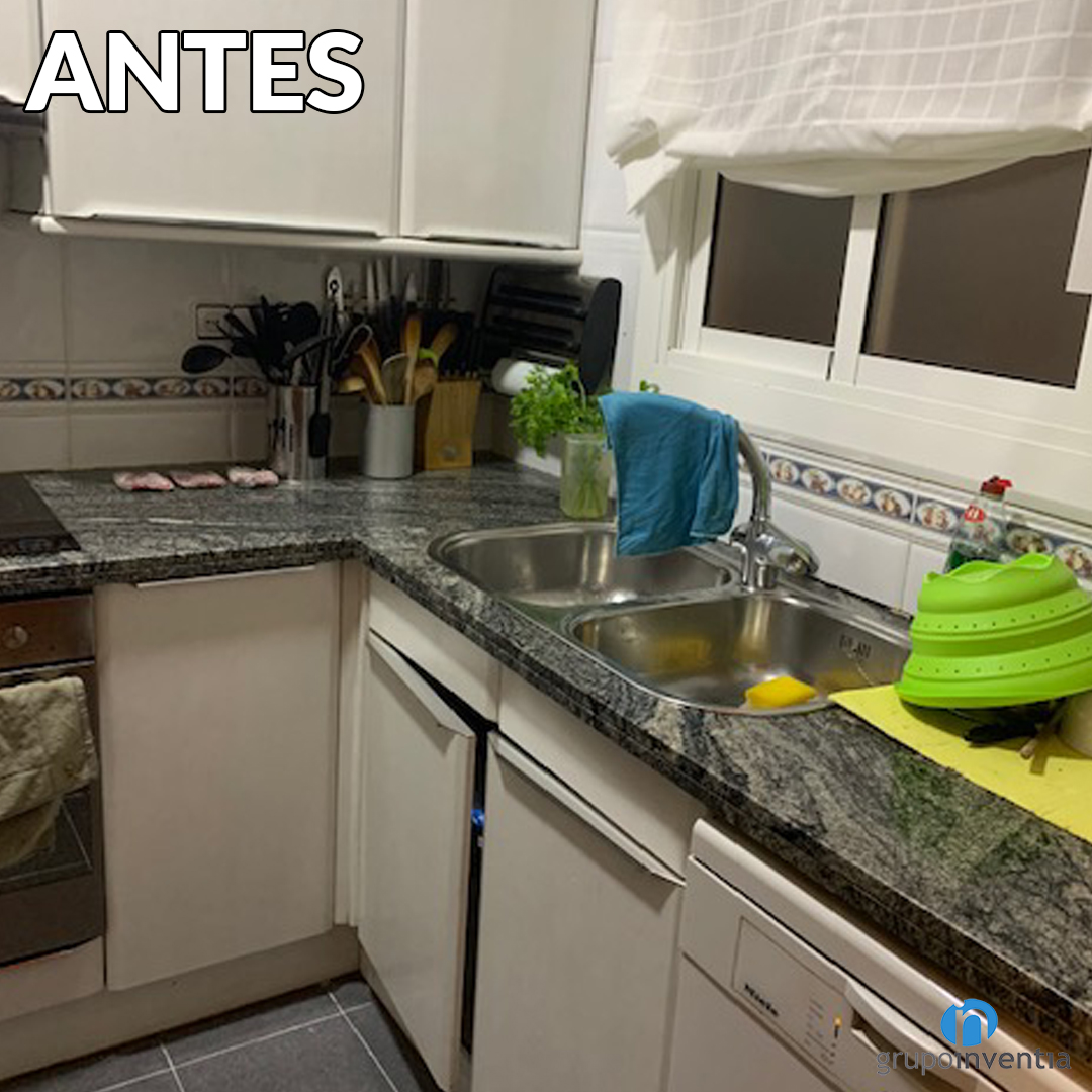 In this way the kitchen renovation is distributed in a U-shape and offers all the current facilities. It has a large support and work surface and the storage capacity has been expanded. In turn, the new appliances have been integrated into the kitchen furniture. Refrigerator, oven and microwave are ready to use.