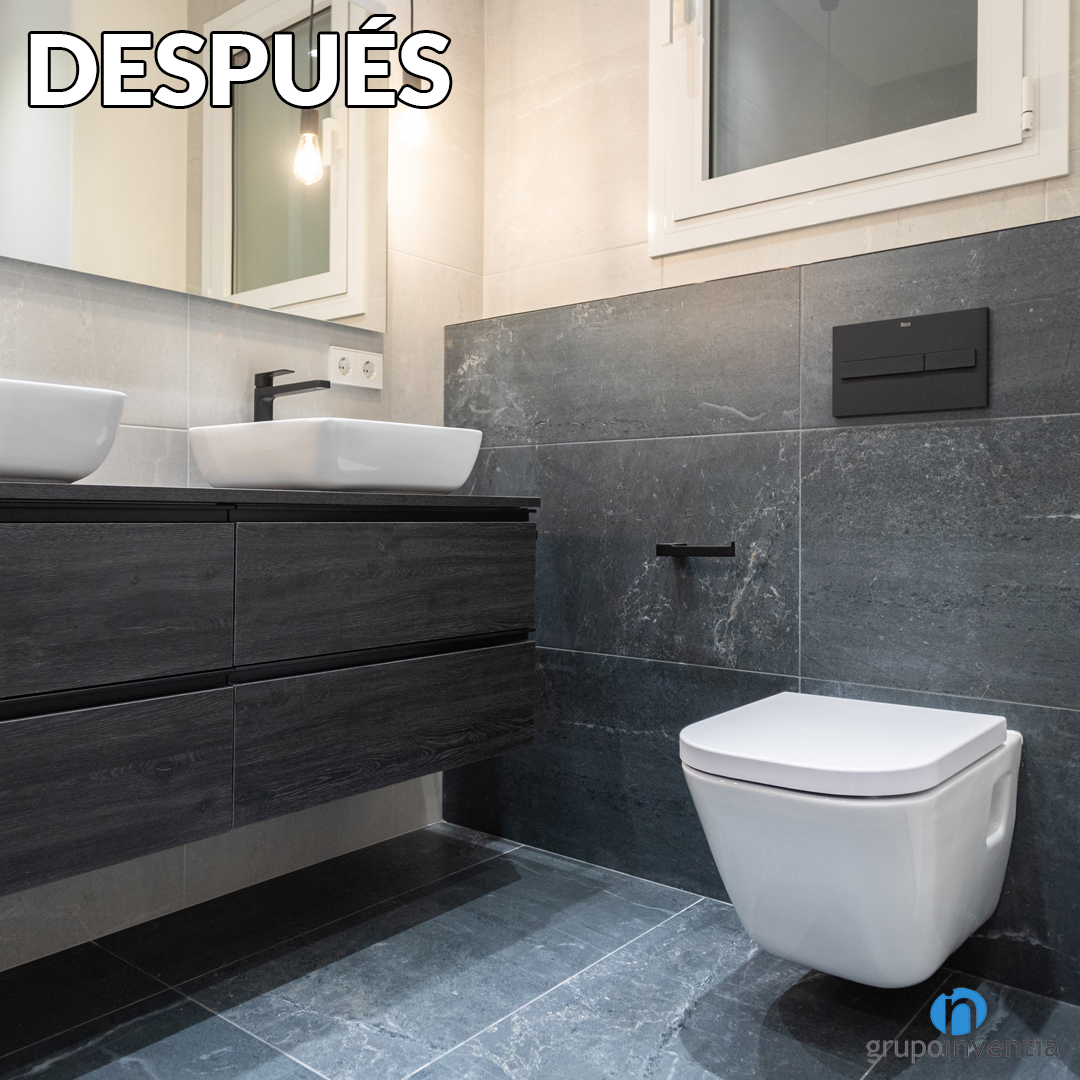 Our house renovations in Barcelona also include improvement work in key areas of the house: bathrooms and kitchen. In the existing bathroom, the image has been completely renewed and new sanitary equipment has been installed. After the work of integral reform it fulfills all the requirements for a functional and precise use.
