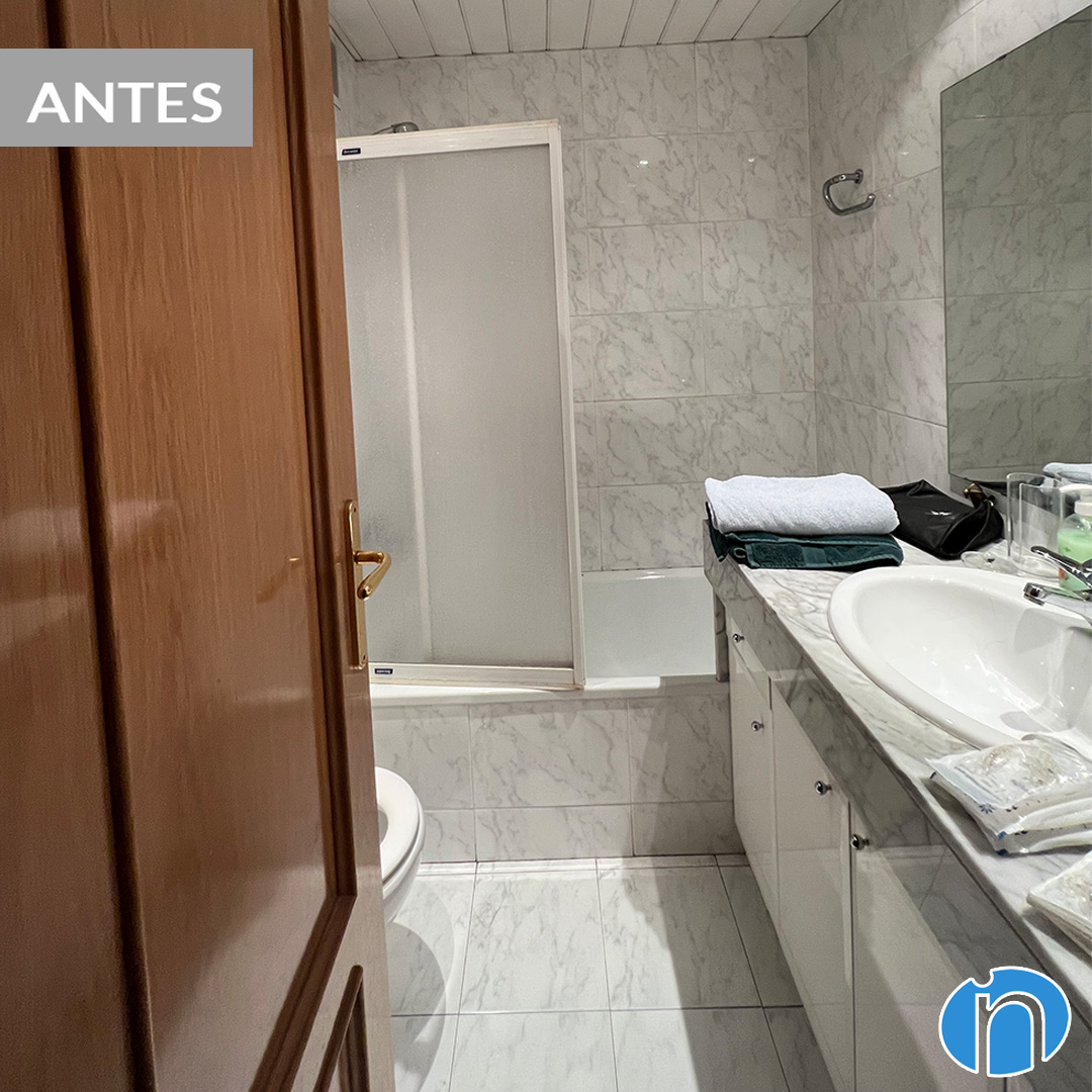 Another of the spaces that we have been in charge of improving is the bathroom. The passage of time had taken a toll both on the aesthetic level and on the equipment and it needed to be updated. We have taken care of removing the original eighties-style tiles and have placed beige ones.