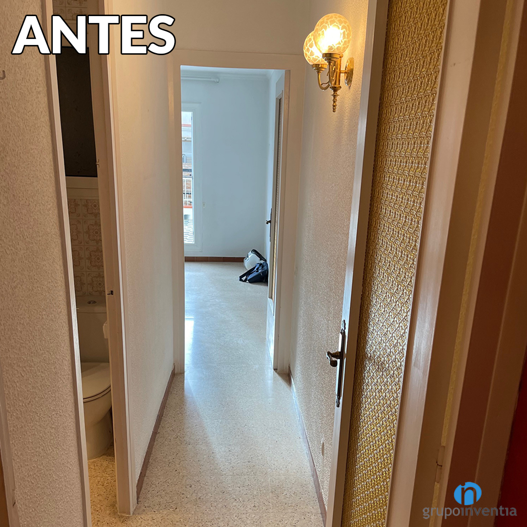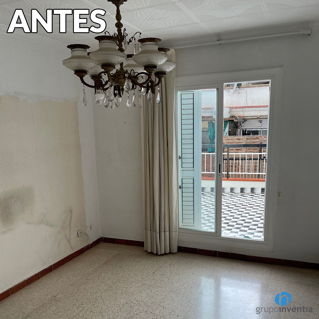 To do this, work has been carried out on conditioning and painting the walls. The color white has been used, an ideal shade for natural light to spread to all corners. The original terrazzo flooring has been replaced by an imitation parquet ceramic floor. The same that has also been placed in the kitchen and bathroom.