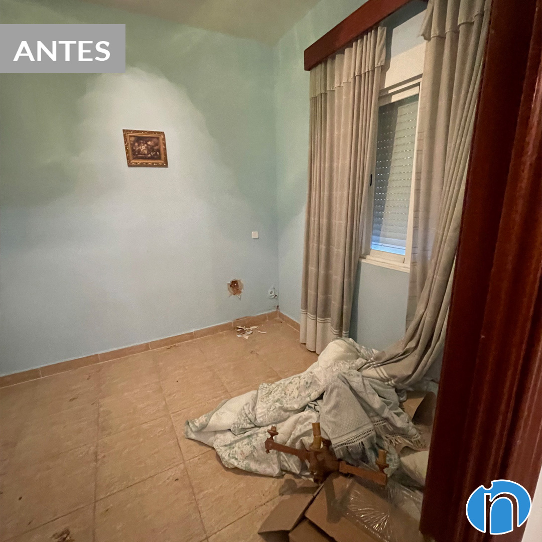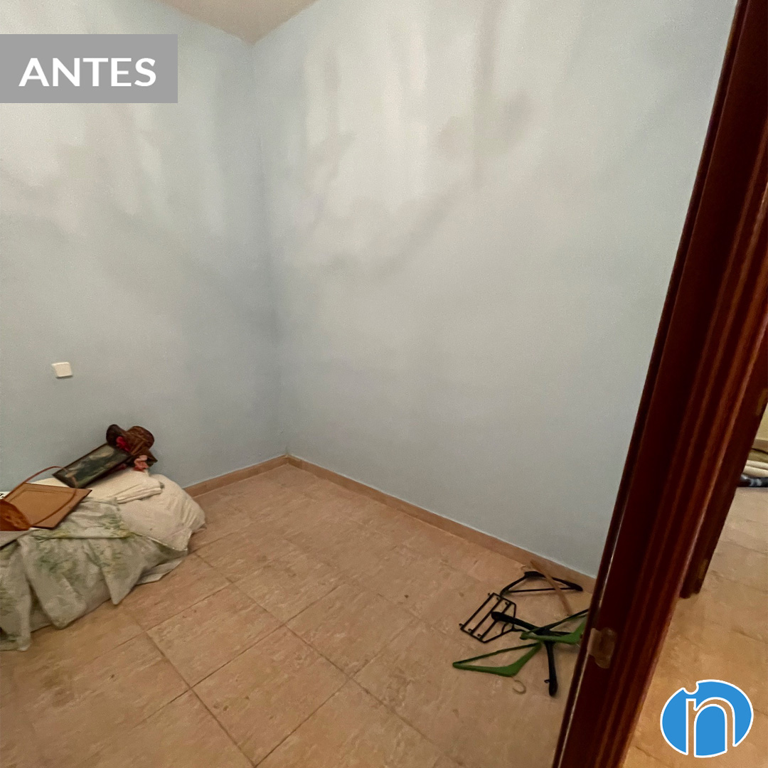 In both the common areas and the bedrooms we have painted the walls in beige. In this way we can generate more light. It is accompanied by new elements such as parquet imitation ceramic flooring and white doors.