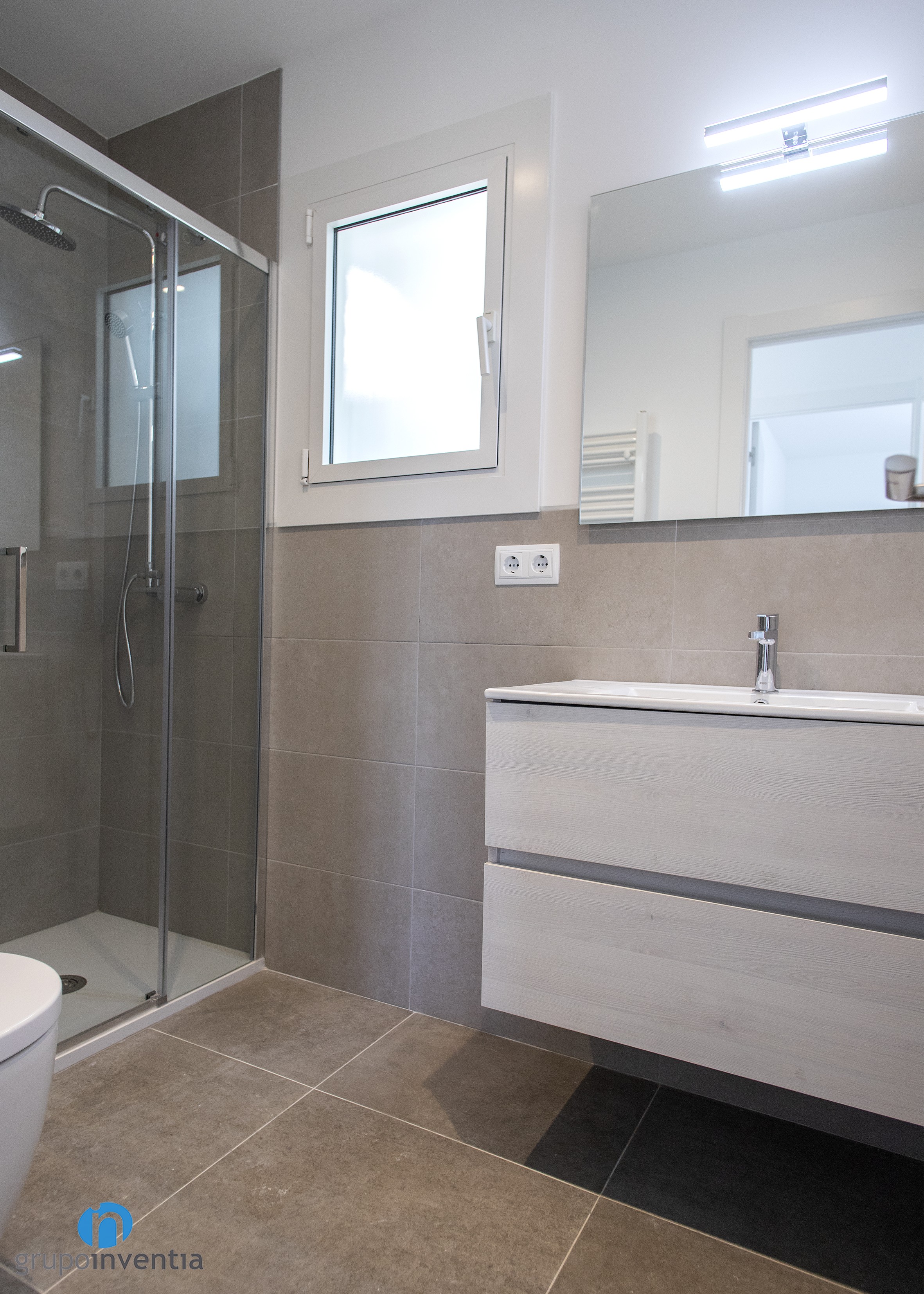 The house had two bathrooms and in both cases a very similar line was made when renovating them, both in image and in equipment. In this last aspect, these bathroom renovations were equipped with a sink with storage furniture, a toilet and a shower protected by a sliding door screen.