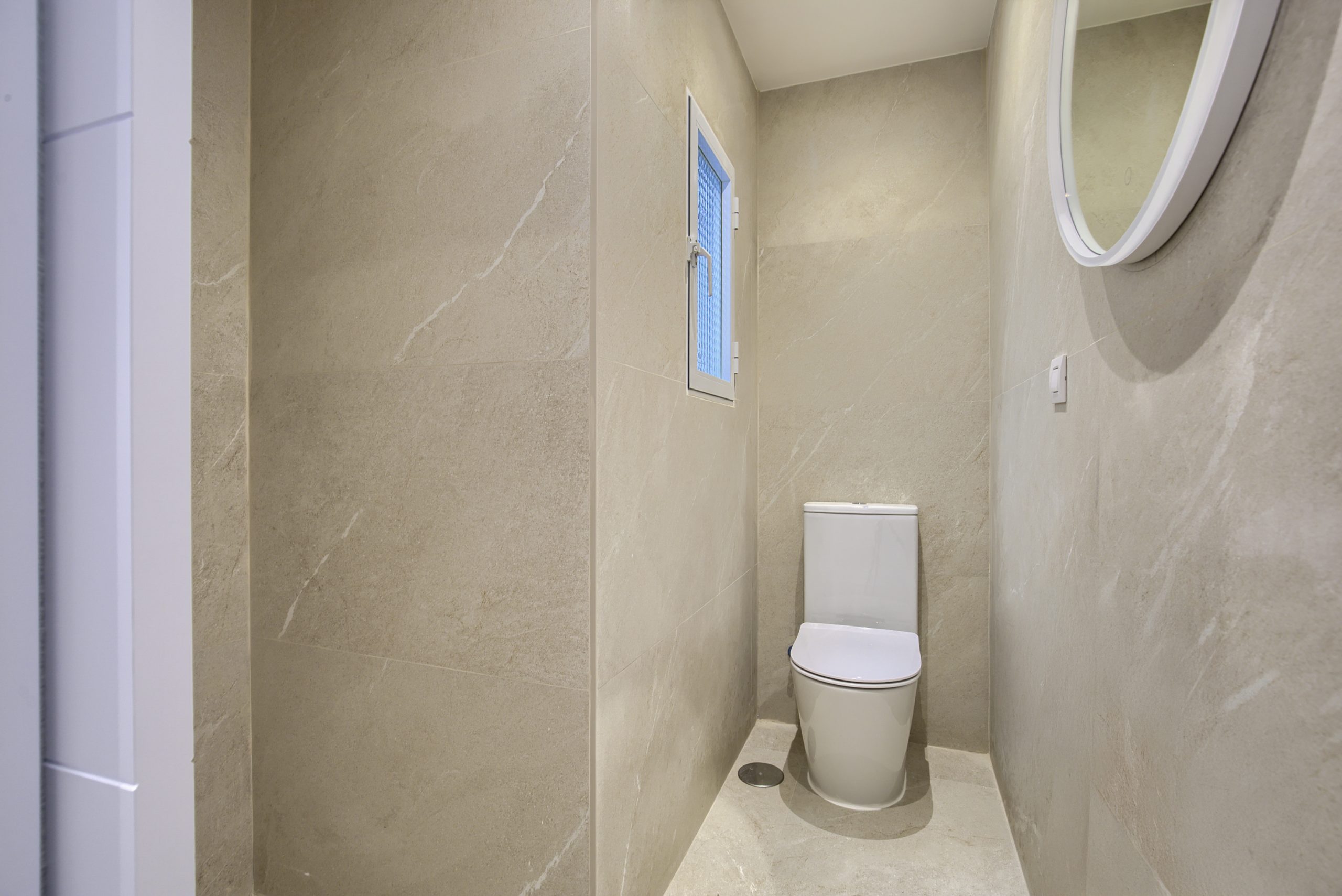 The equipment includes a washbasin unit with storage. A classic toilet with rear cistern has been installed. There is also a spacious shower tray with a screen. These improvements add functionality and comfort to daily use. The renovated bathroom integrates perfectly with the home’s general style.