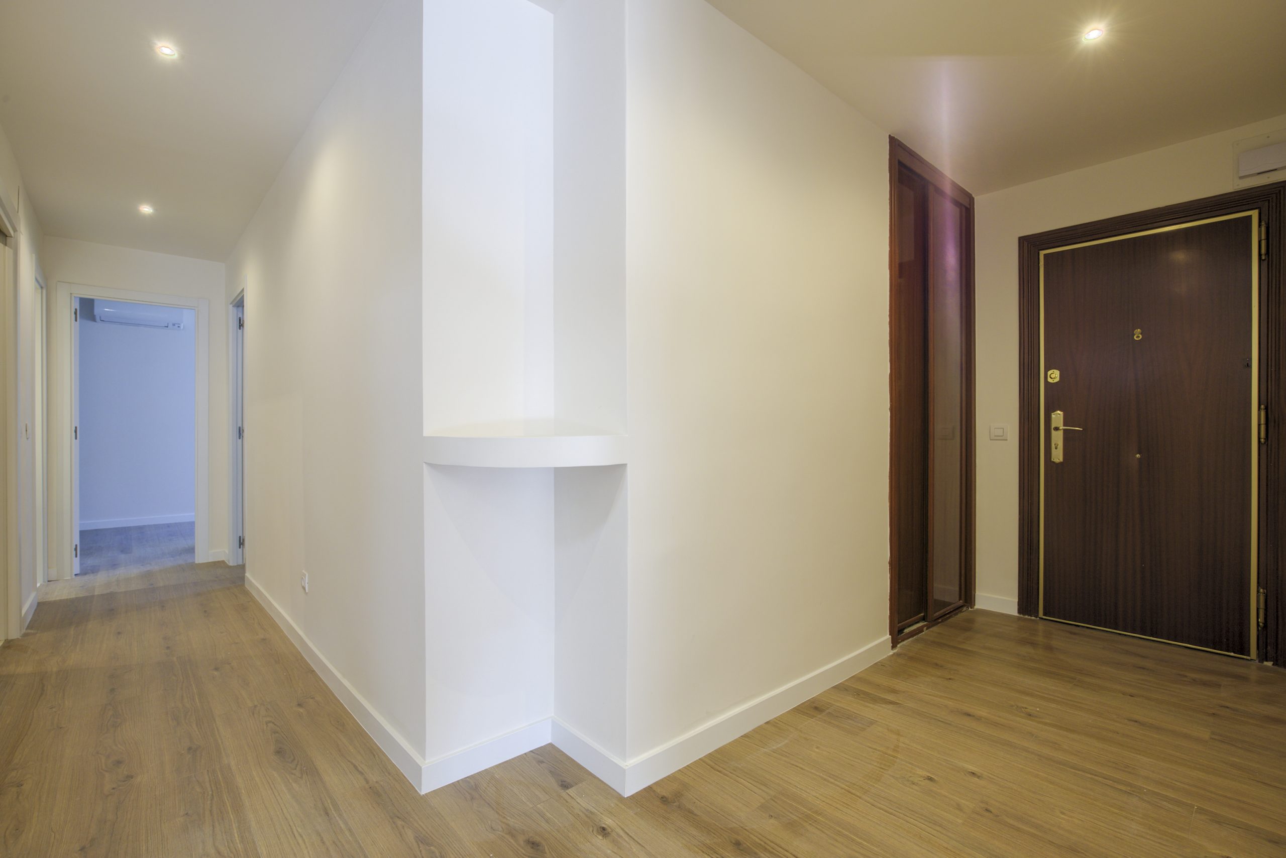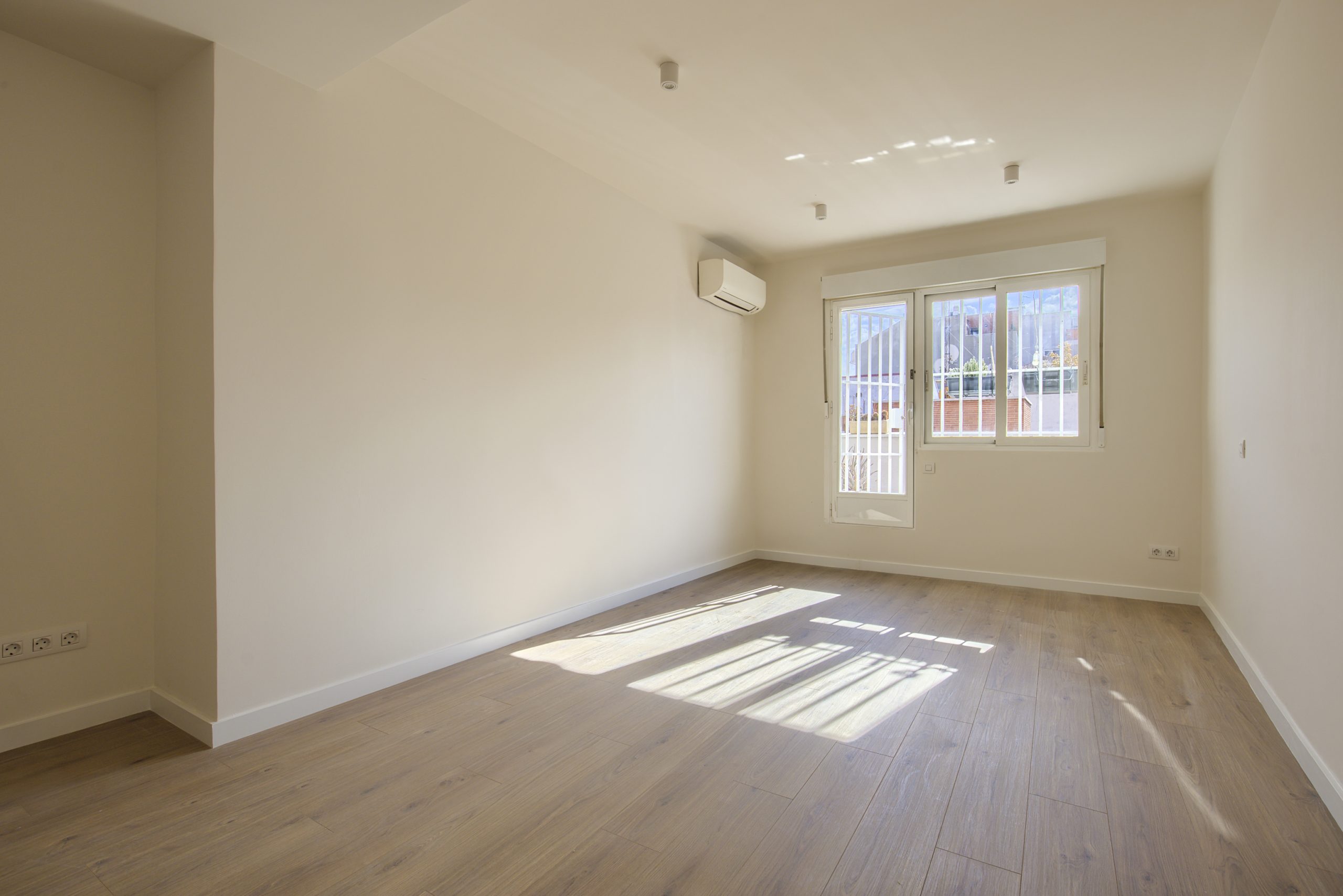 The interior improvement has been one of the main achievements of this complete renovation in Madrid. We renewed all the finishes to fully update the space. The walls have been painted in a soft beige tone that brings warmth. This new colour matches perfectly with the installed parquet flooring. The floor has a natural wood look that enhances the feeling of comfort.