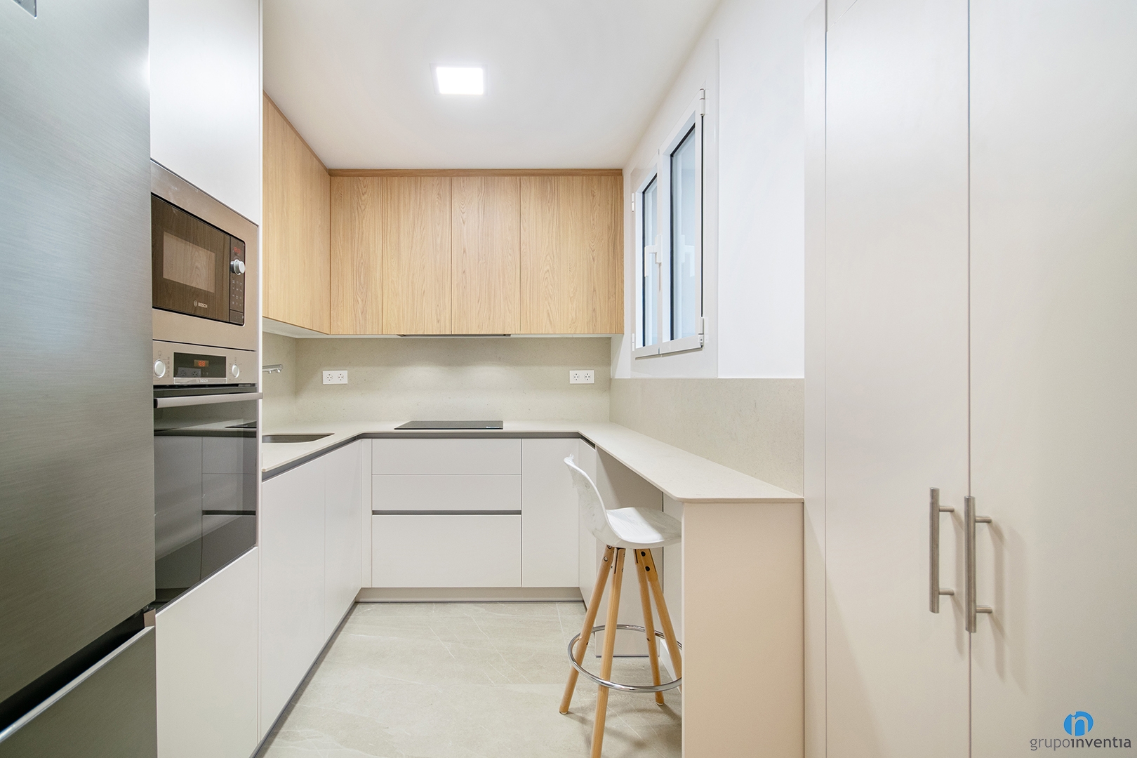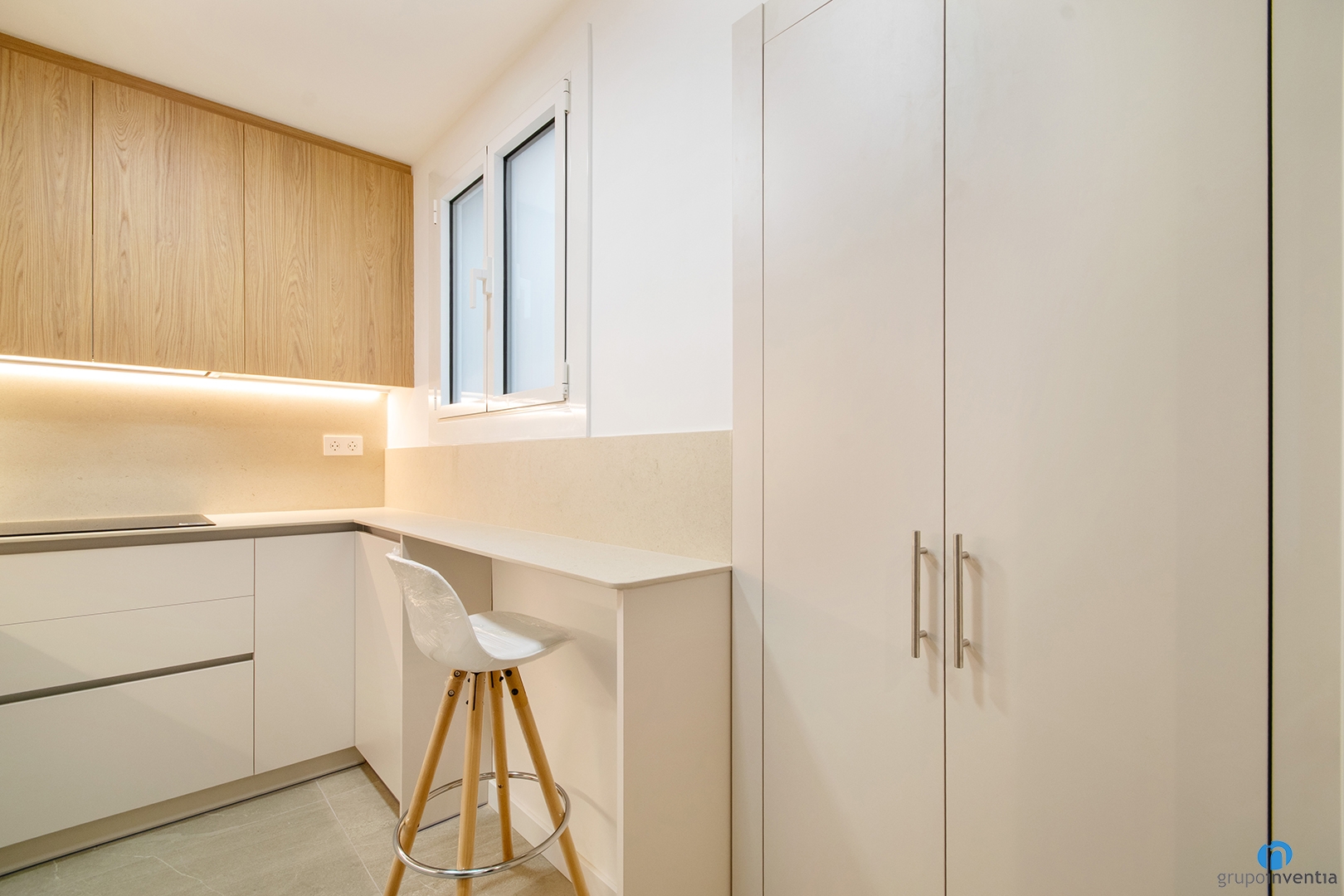 The new kitchen is distributed in a U-shape and offers excellent mobility in its use. After the kitchen renovation, each element occupies the most functional place within the room.