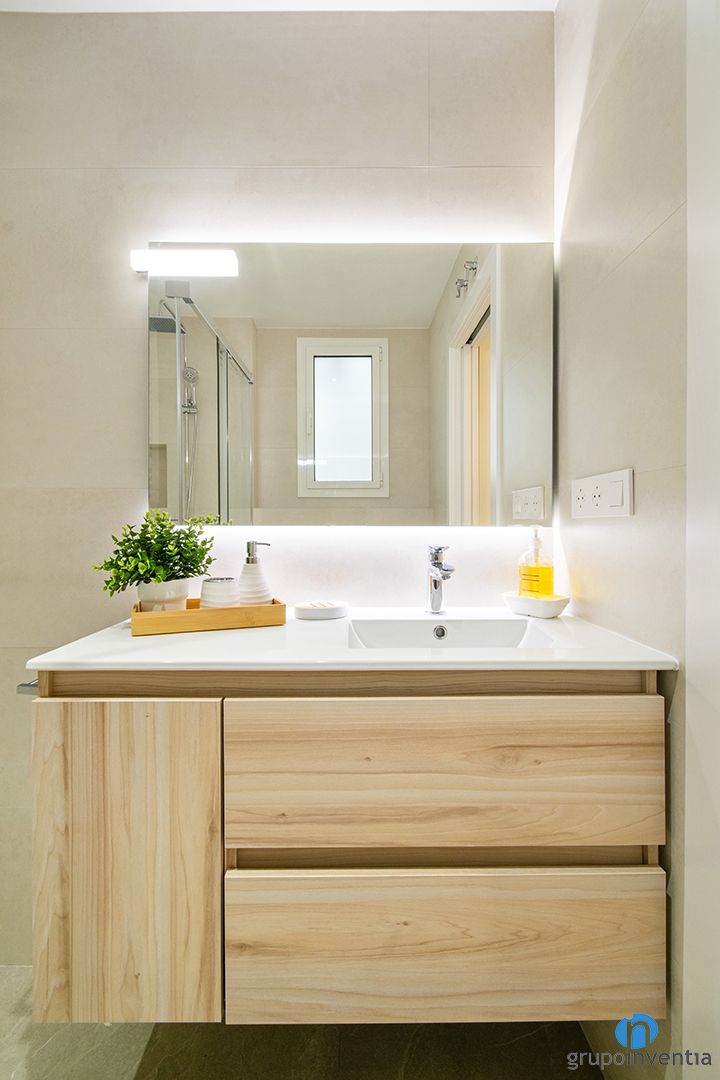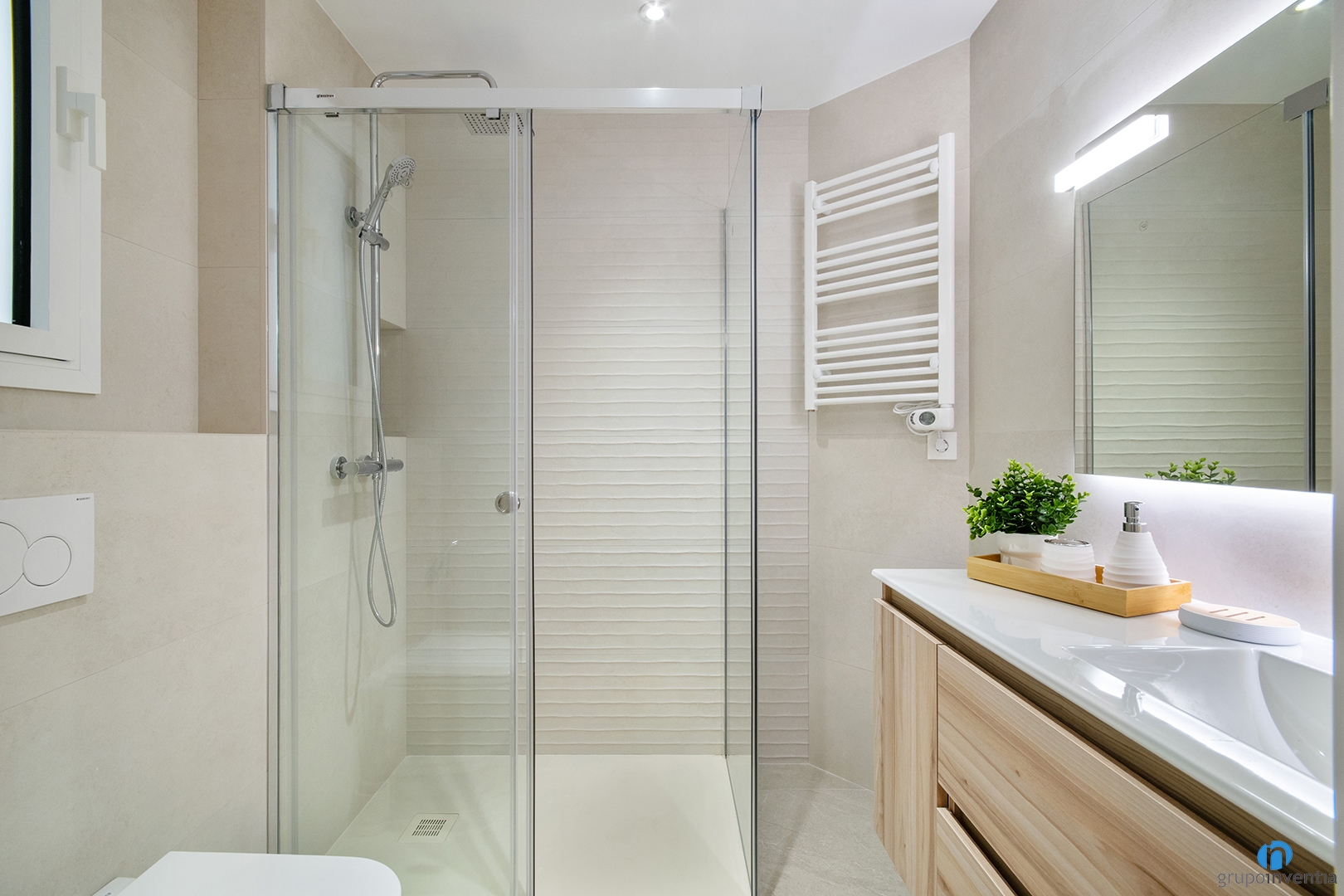 Within this renovation in Barcelona we have been responsible for renovating two bathrooms. They follow the overall image of the home and are presented in neutral tones.