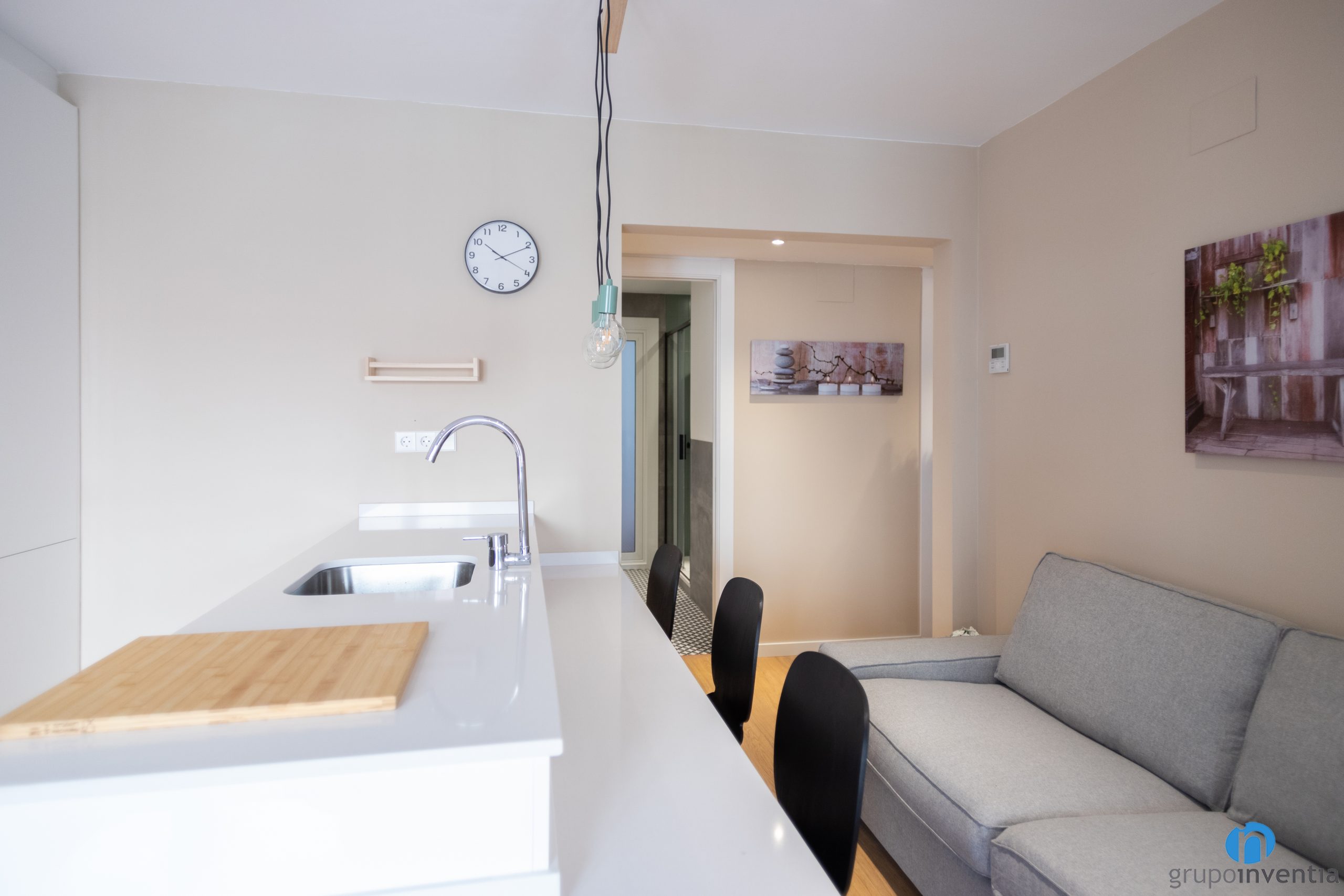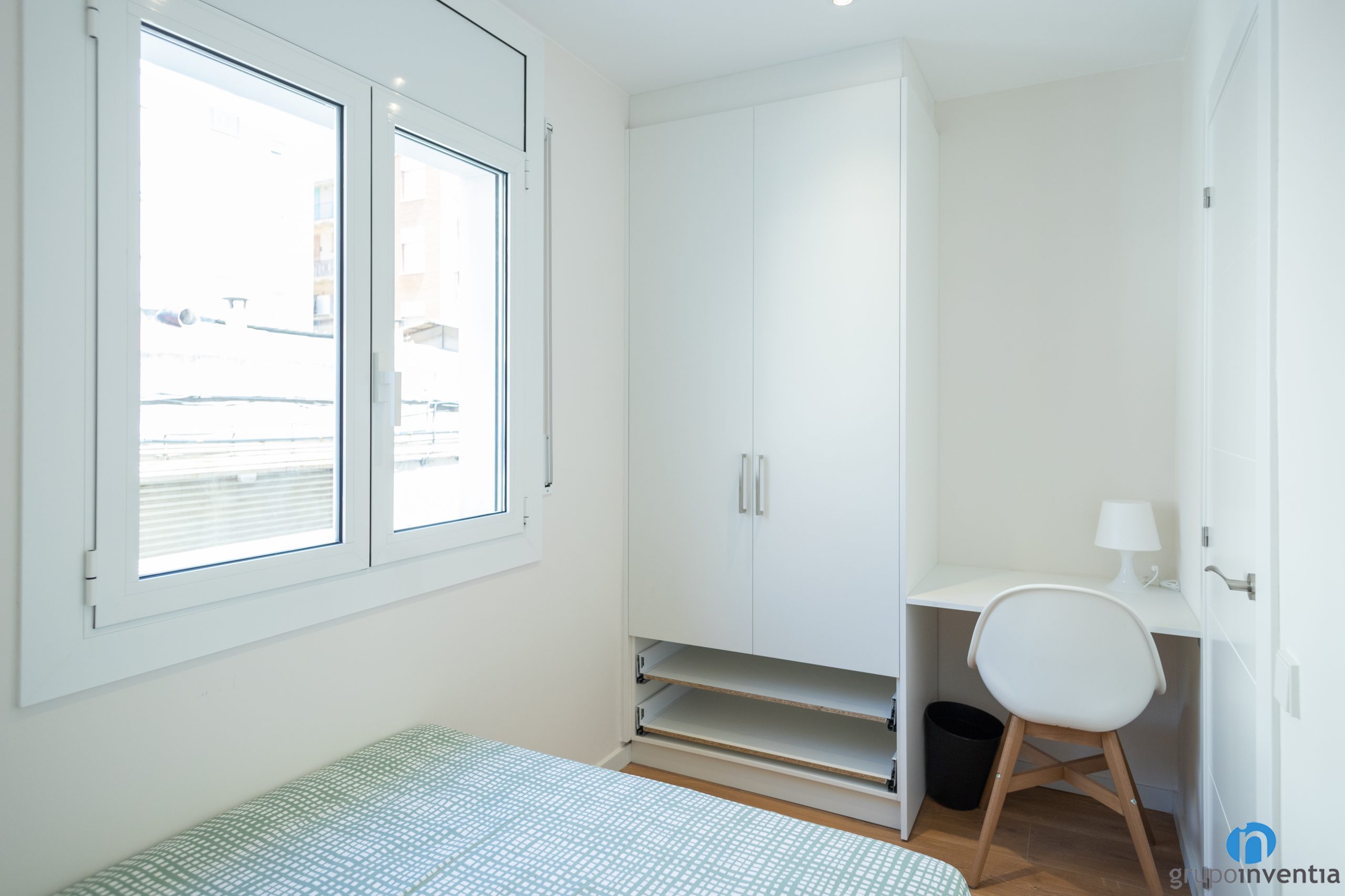 Precisely in this flat renovation, the windows have also been changed. Now all windows are made of aluminum and with double glazing. Thanks to this, ideal thermal and acoustic insulation is achieved. Among all the improvements is also the change of pavement. A parquet floor has been laid in medium tones of wood.