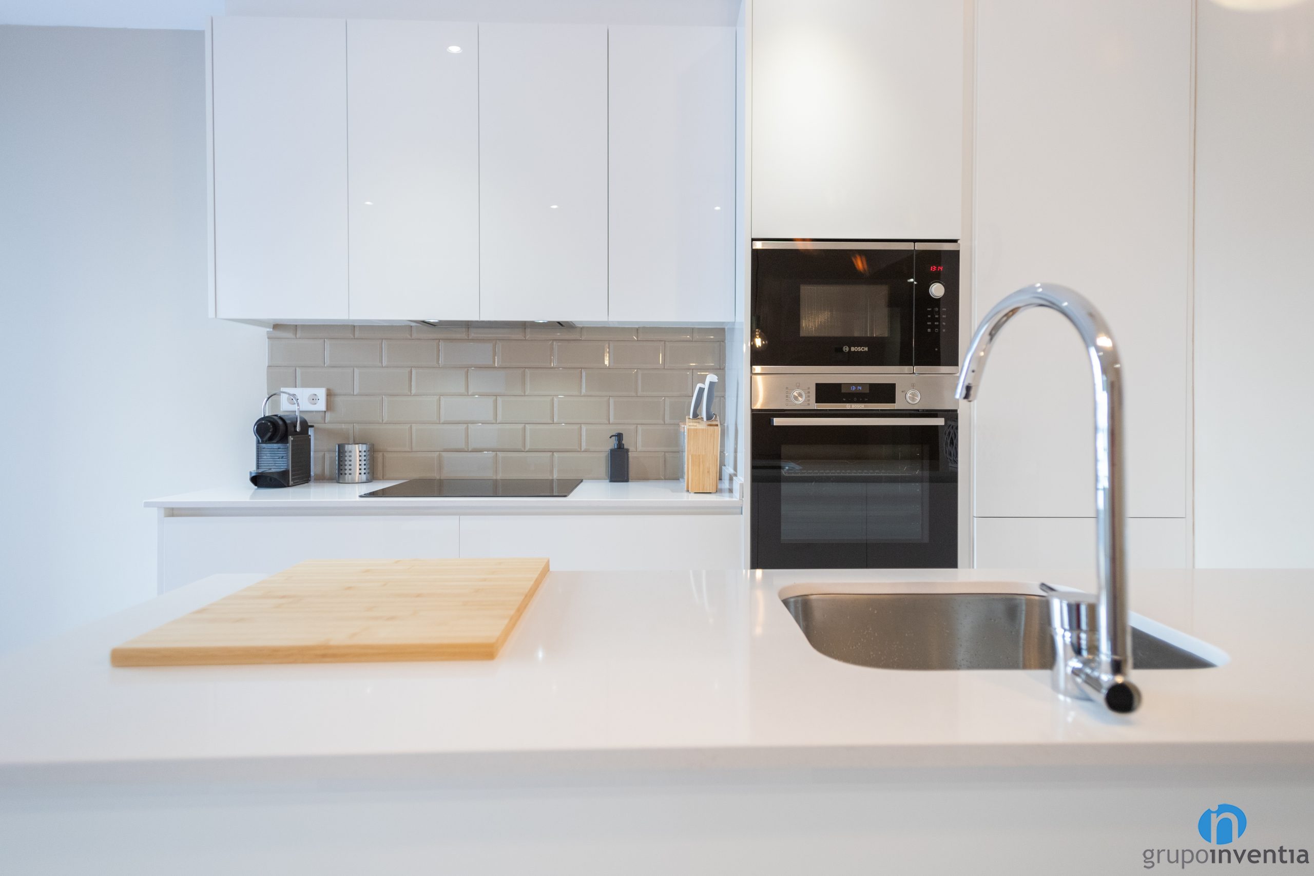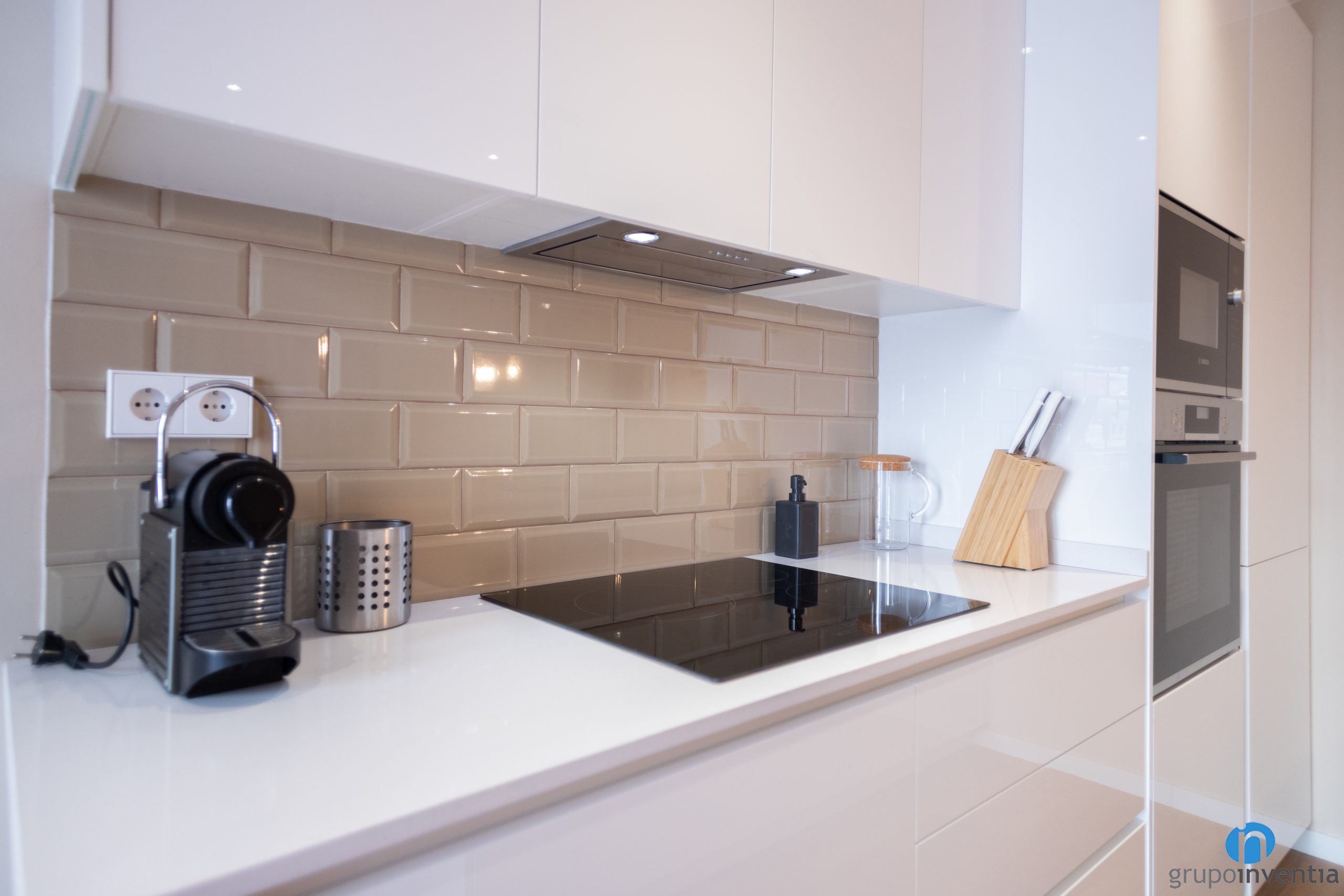 The kitchen is open and distributed on two fronts. It is a complete kitchen renovation that has only improved the area. The kitchen is a key and daily use space that must always be ready to offer the best performance. In this particular case it has been possible to provide it with perfect functionality.
