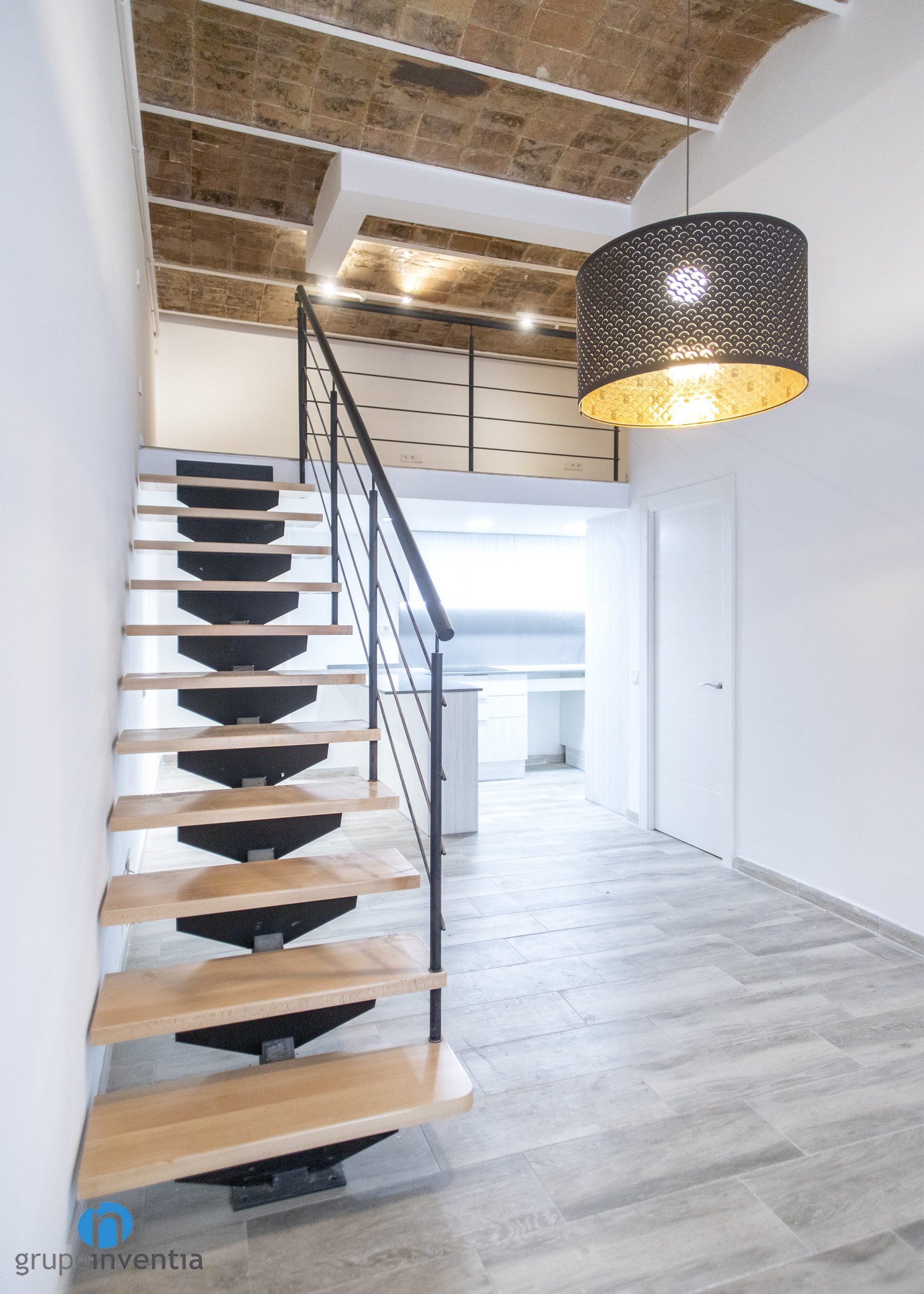 New home renovation in Barcelona completed by Grupo Inventia. This time we have commissioned to complete a study of two heights. On the ground floor there is a spacious loft space that includes a bedroom, a bathroom and an open-plan kitchen, but well delimited.