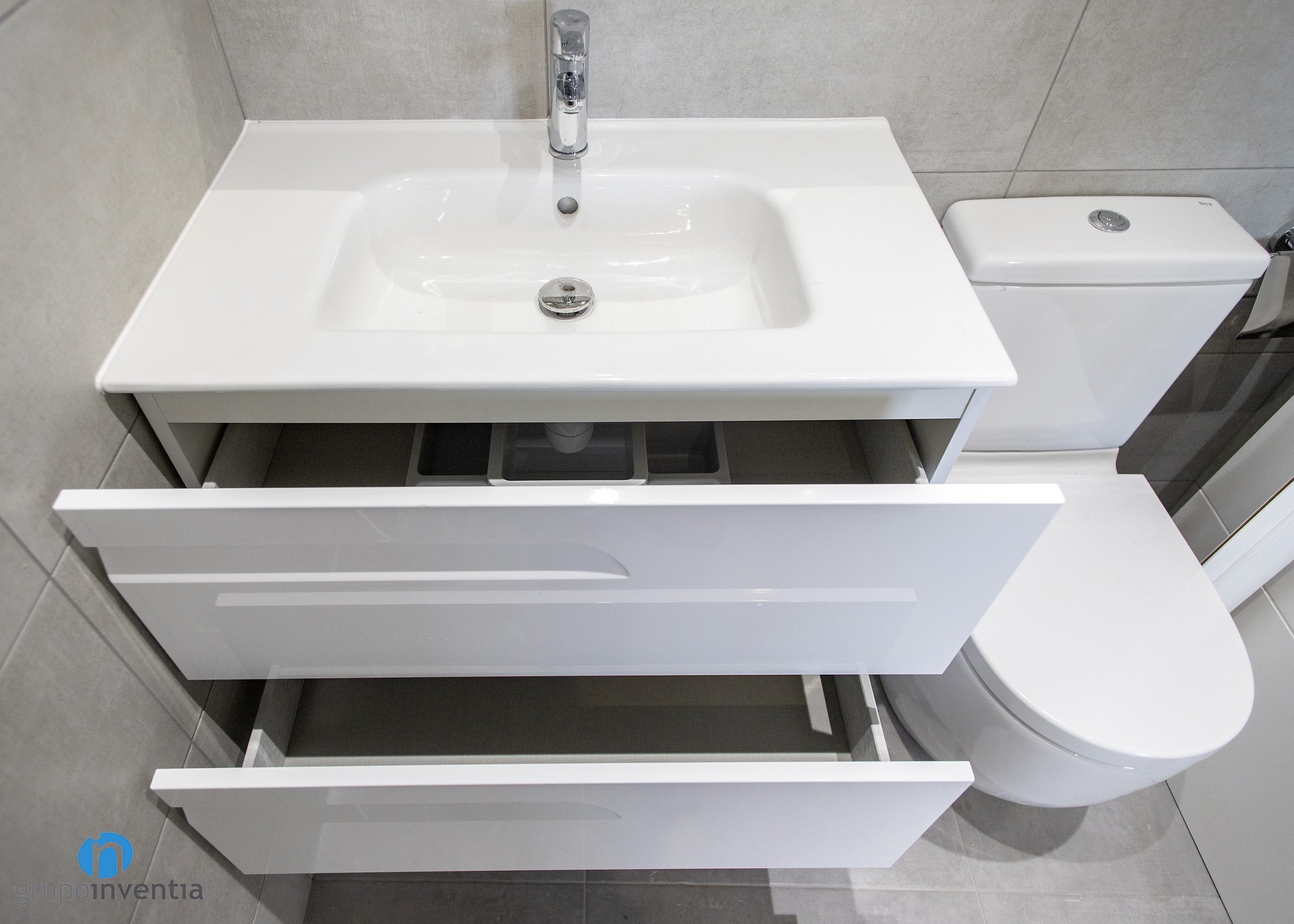 At Grupo Inventia we have an extensive catalog of sanitary items for a bathroom renovation and in this case the expectations have also been met. Each room is now ready to provide the best with a sink with built-in storage furniture, a toilet and a shower. Two bathrooms perfect for both the daily demands and the most relaxed moments.