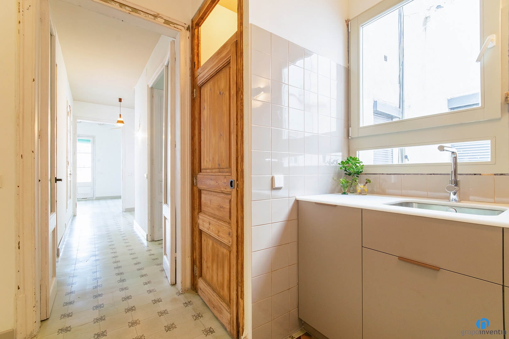 On the other hand, we have kept original elements such as the doors, the hydraulic pavement and the volta catalana ceiling. Each of these elements has been previously restored and suitable. In this way, the house maintains the original essence and a characteristic design of Barcelona.