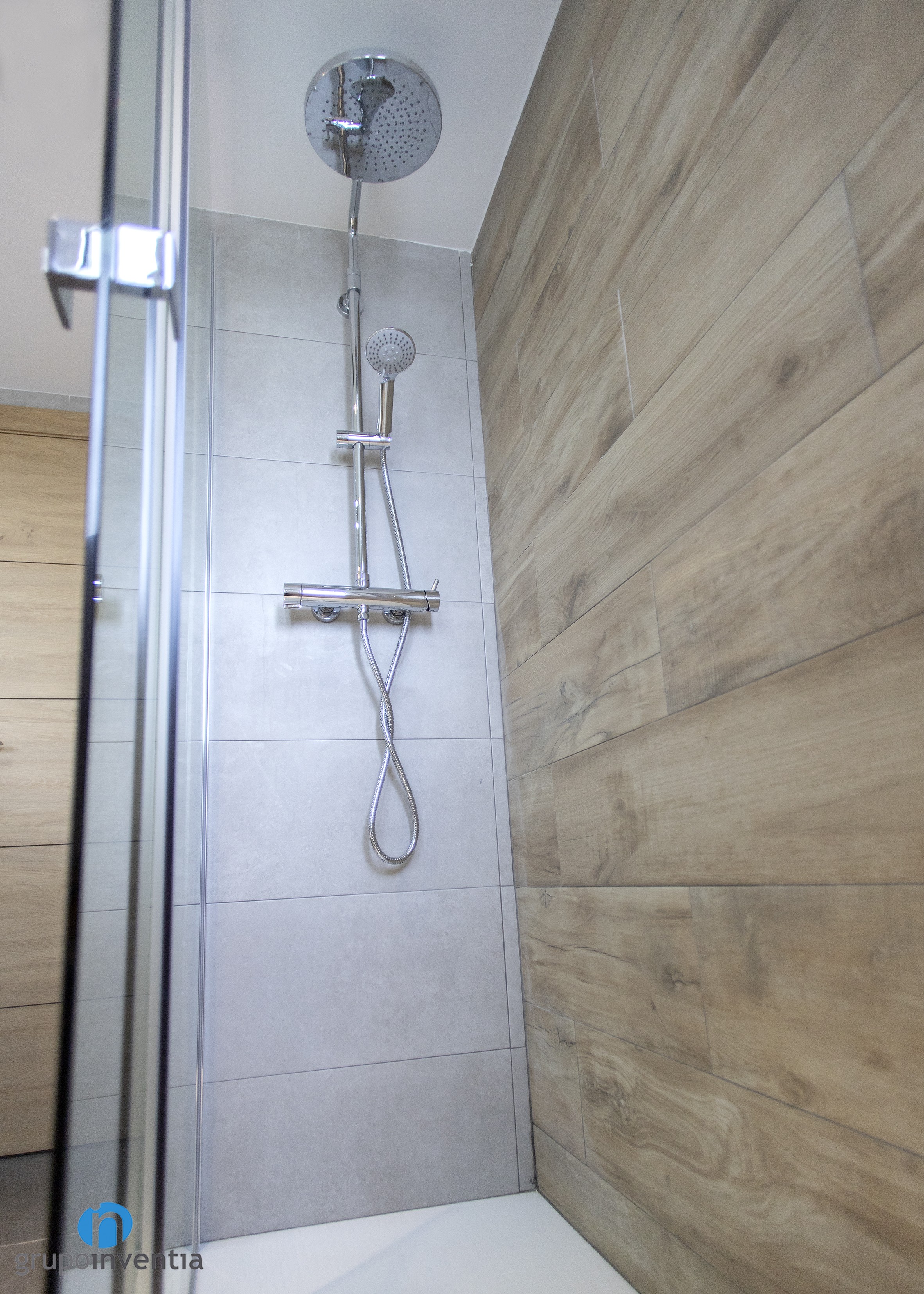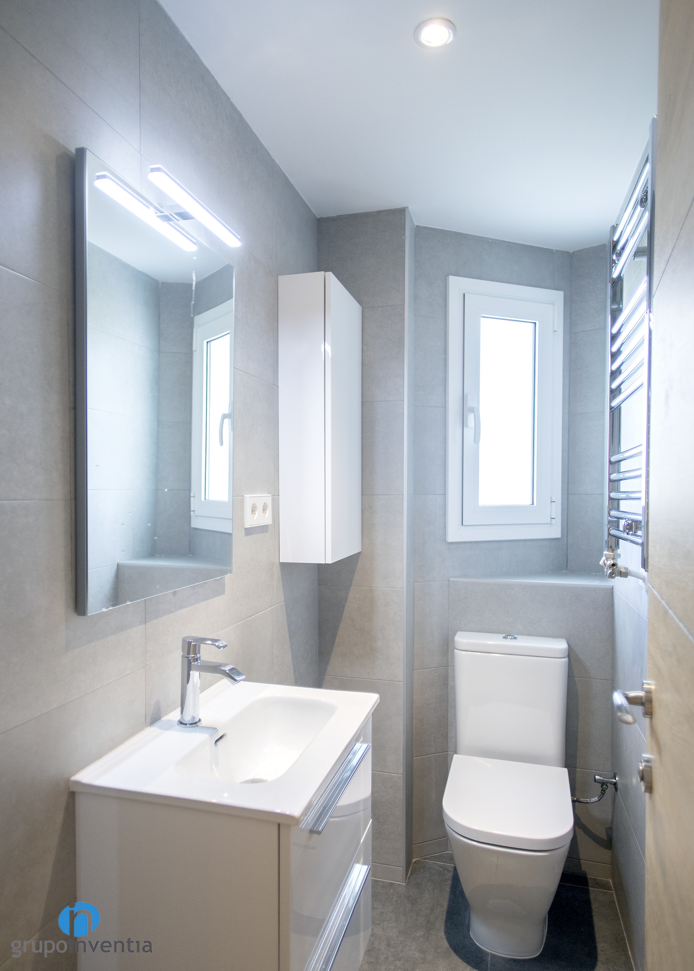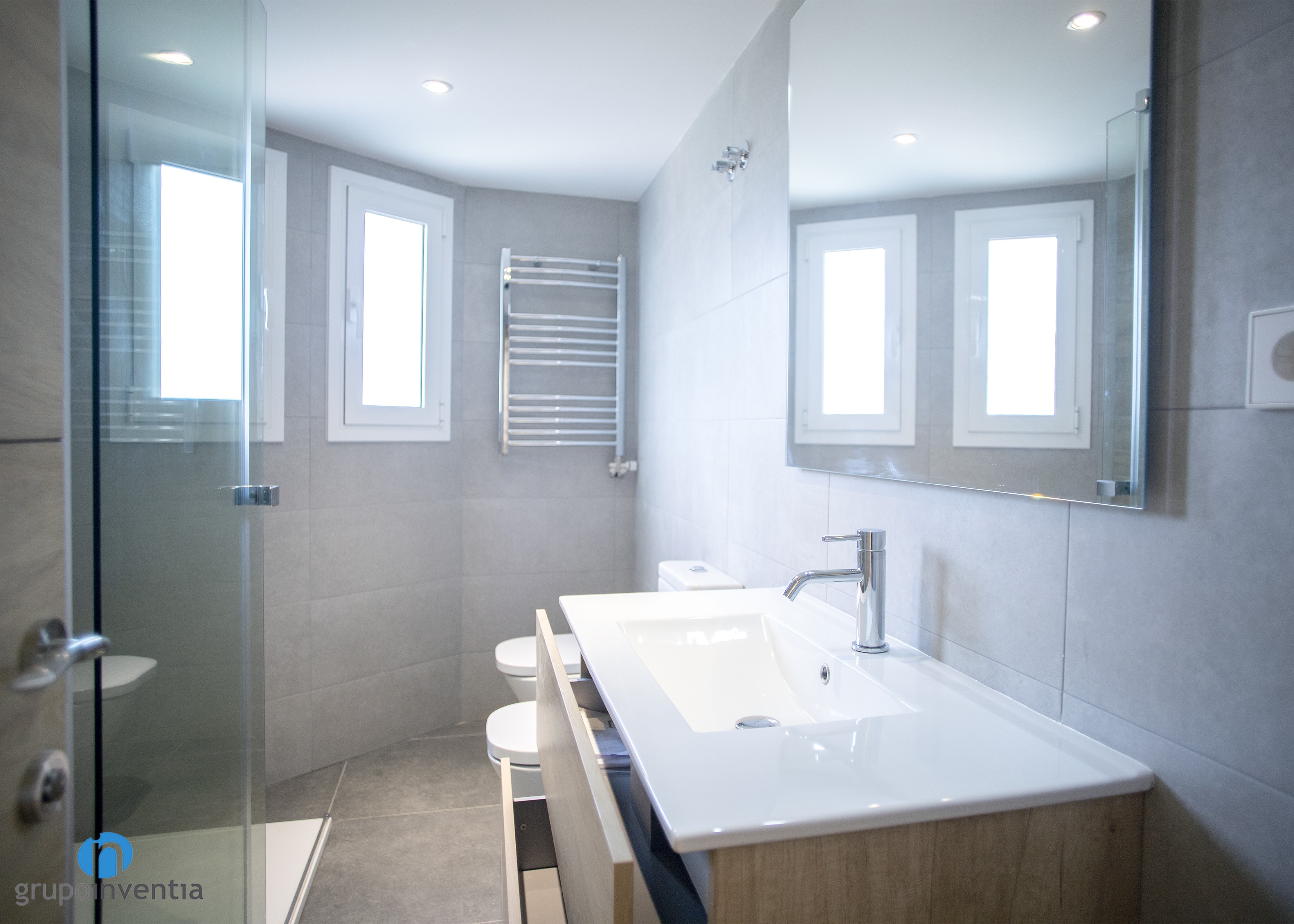In this new work by Grupo Inventia, we were also responsible for carrying out the bathroom renovations. It is a main bathroom and one of courtesy and both are fully equipped. Every bathroom renovation was installed with a sink with built-in storage furniture, a toilet and a shower with screens. In addition, a bidet was added to the main bathroom.