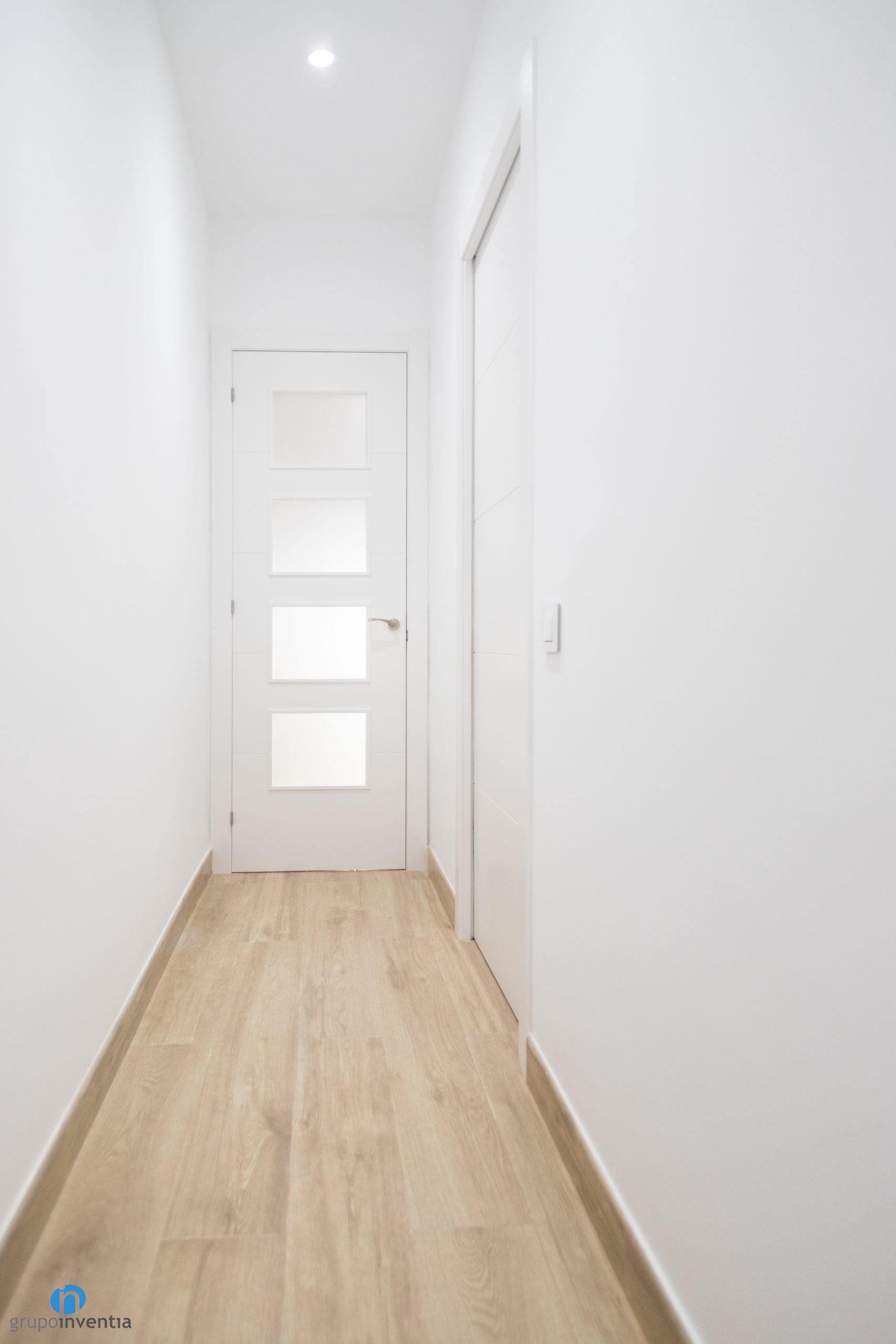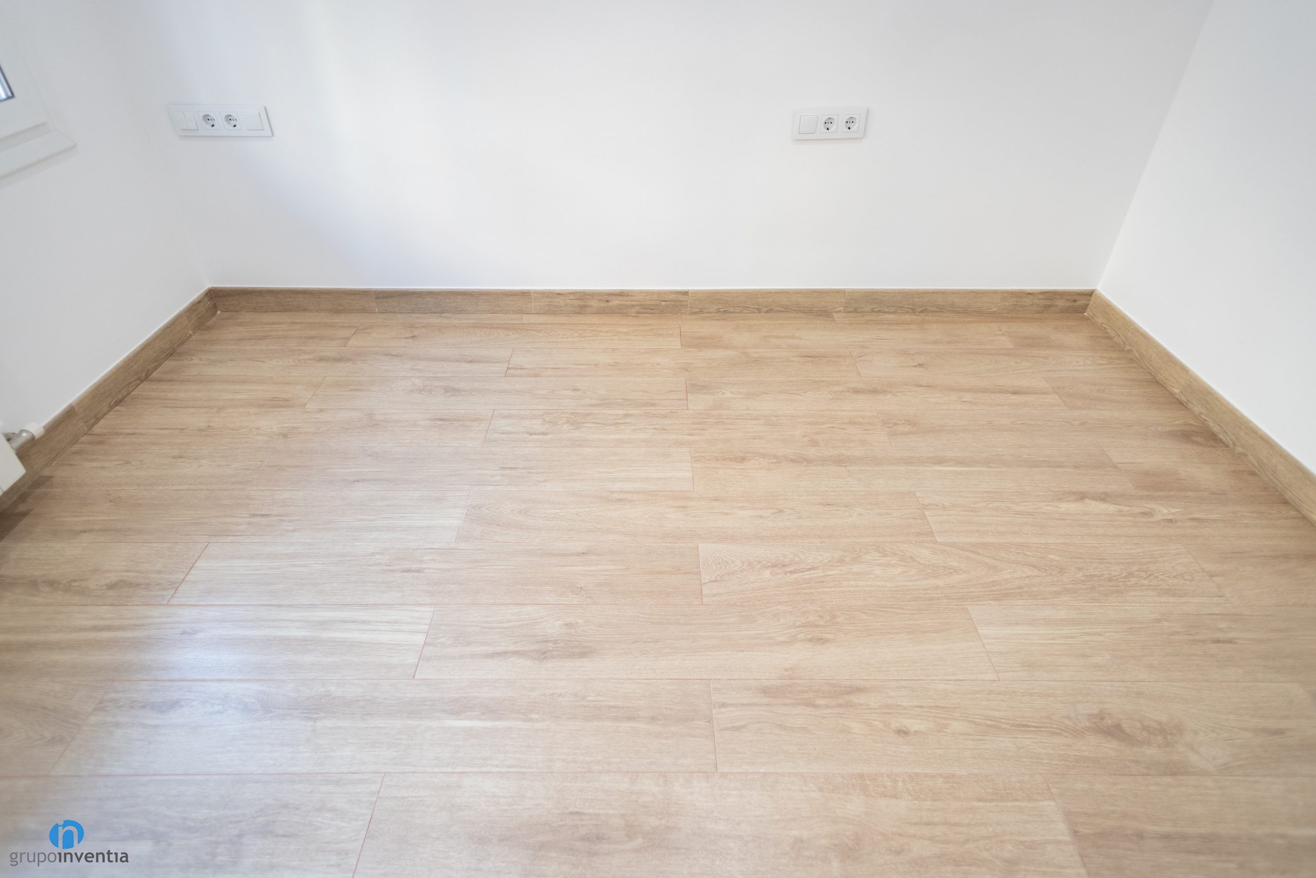 In this way a pleasant and welcoming atmosphere is achieved in all rooms. Features that are enhanced thanks to the new pavement, an imitation wood ceramic floor. It is a resistant material that provides a very effective warmth to the wood. The plinth also has wood finishes creating a nice contrast with the white walls.