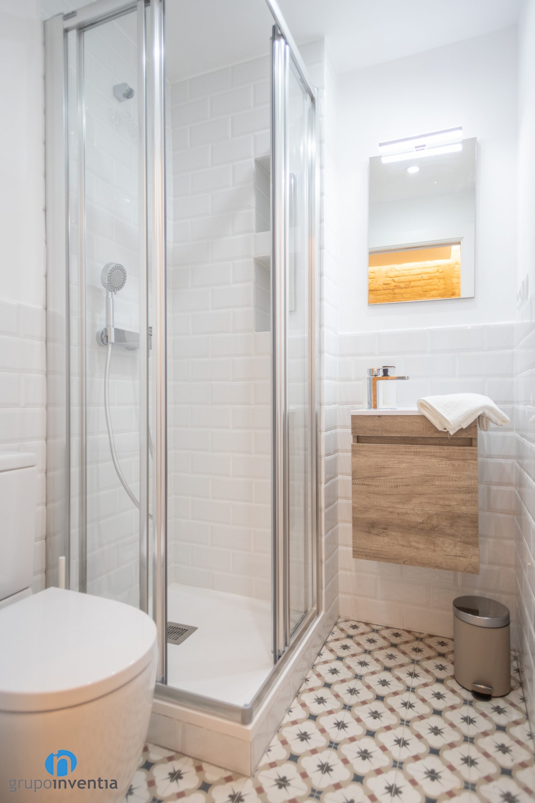 For the new pavement has opted for a new hydraulic floor with a design with a lot of personality. As for the sanitary equipment, each bathroom has a sink with storage furniture at the bottom. It is complemented by a modern toilet and a practical shower protected by sliding door partitions.