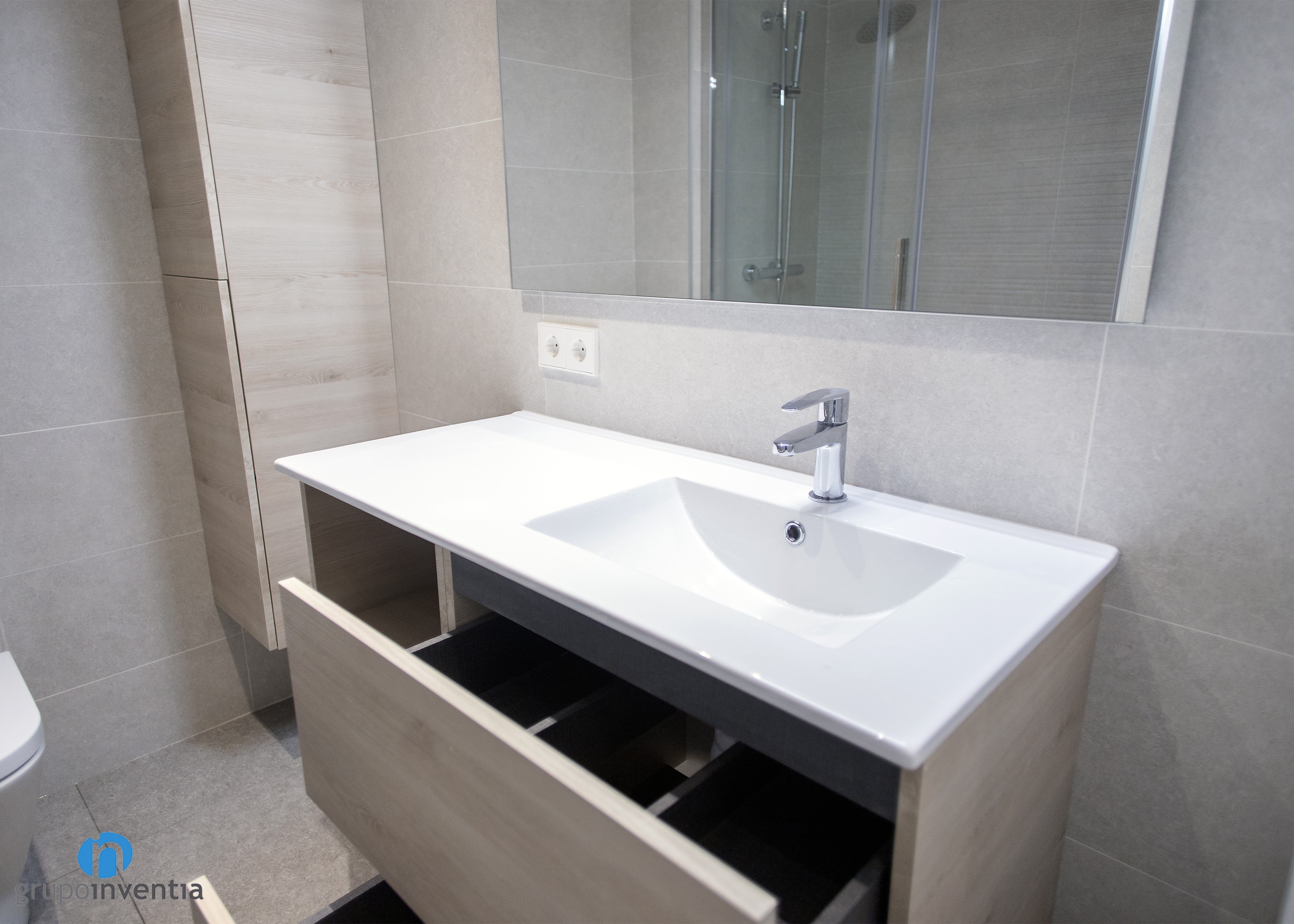 The property had two bathrooms and both were completely renewed in the image and in the sanitary equipment. Taking into account the measures of each room, after the renovation work, these rooms have a sink with built-in storage furniture, a toilet and a comfortable shower. This last element is protected with a transparent screen of sliding doors.