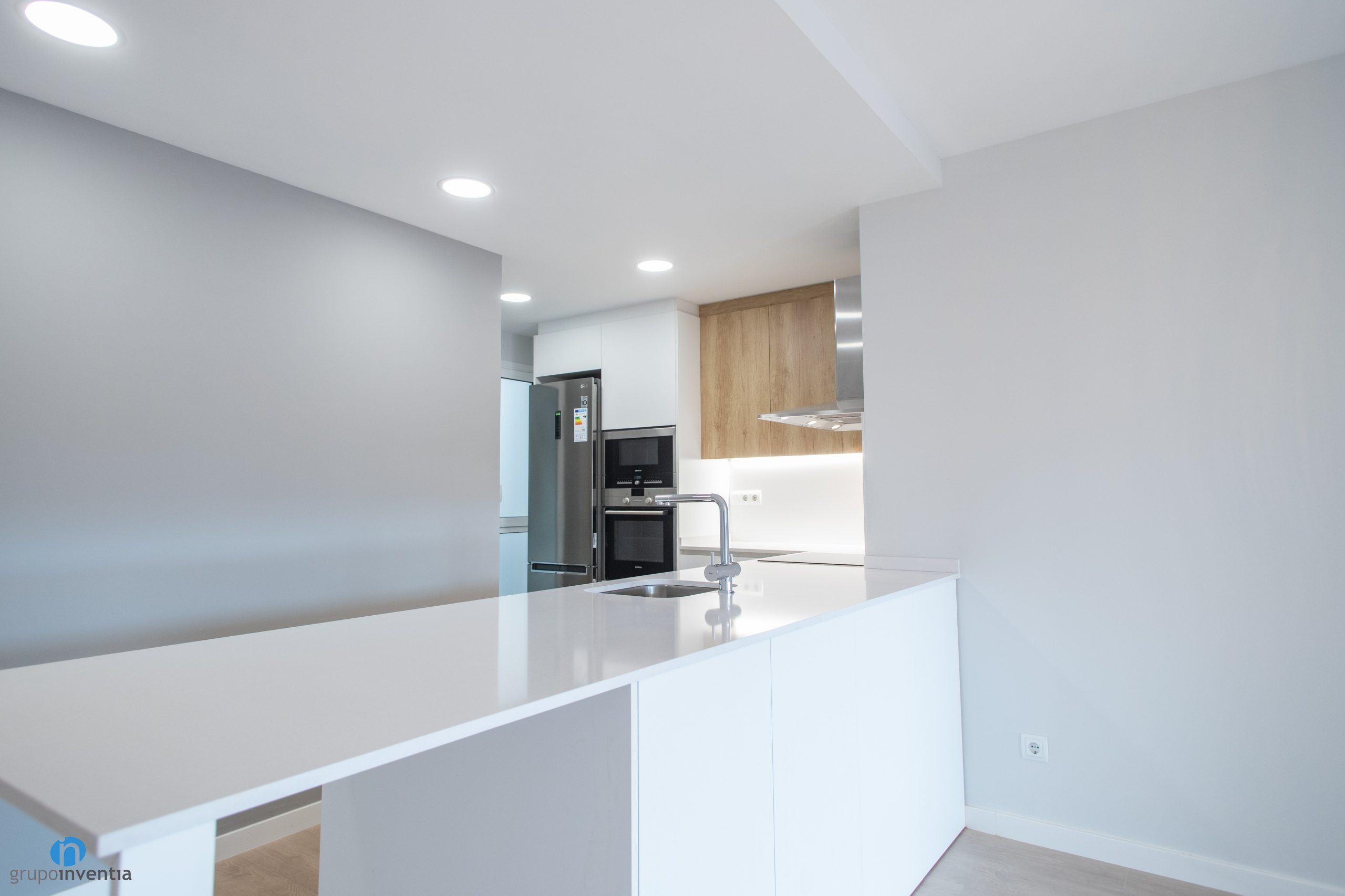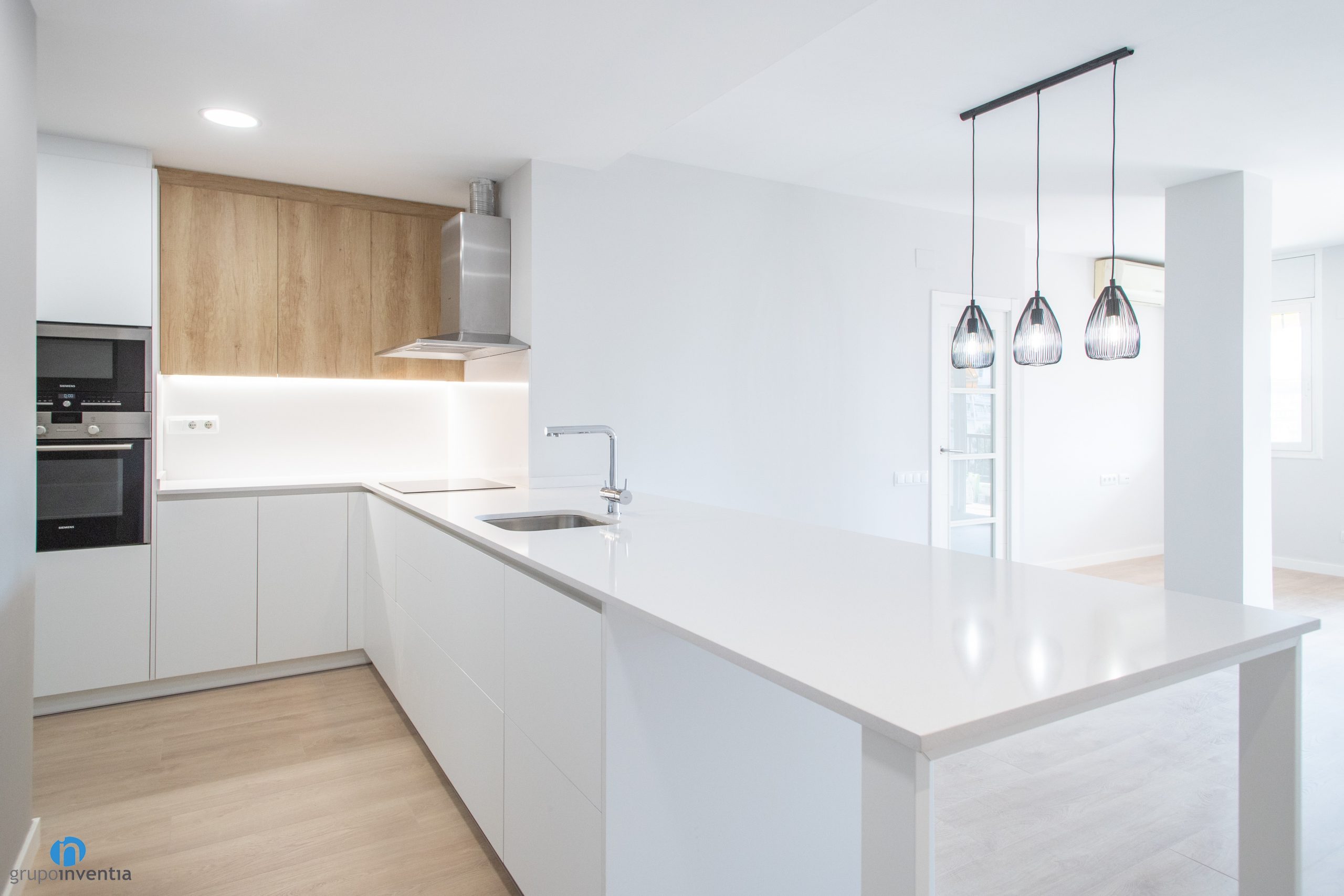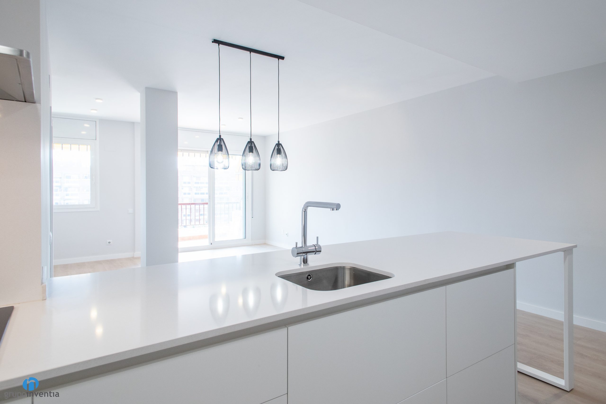 In Grupo Inventia we have been responsible for carrying out the house renovation of a house located on Batista i Roca street in Barcelona. A joint work between our interior design department and construction team. The result is a house renovation in which the image of all the spaces has been improved and both the kitchen and the bathroom have been fully equipped.