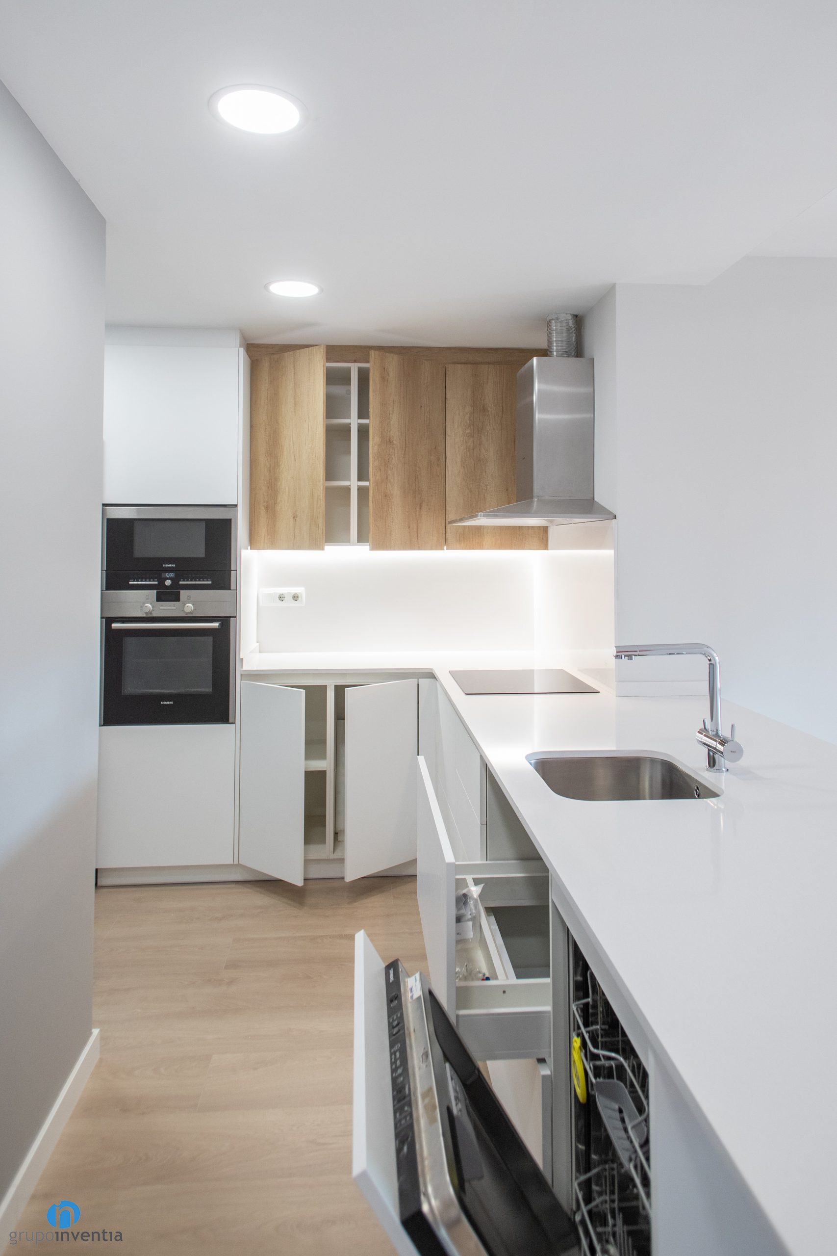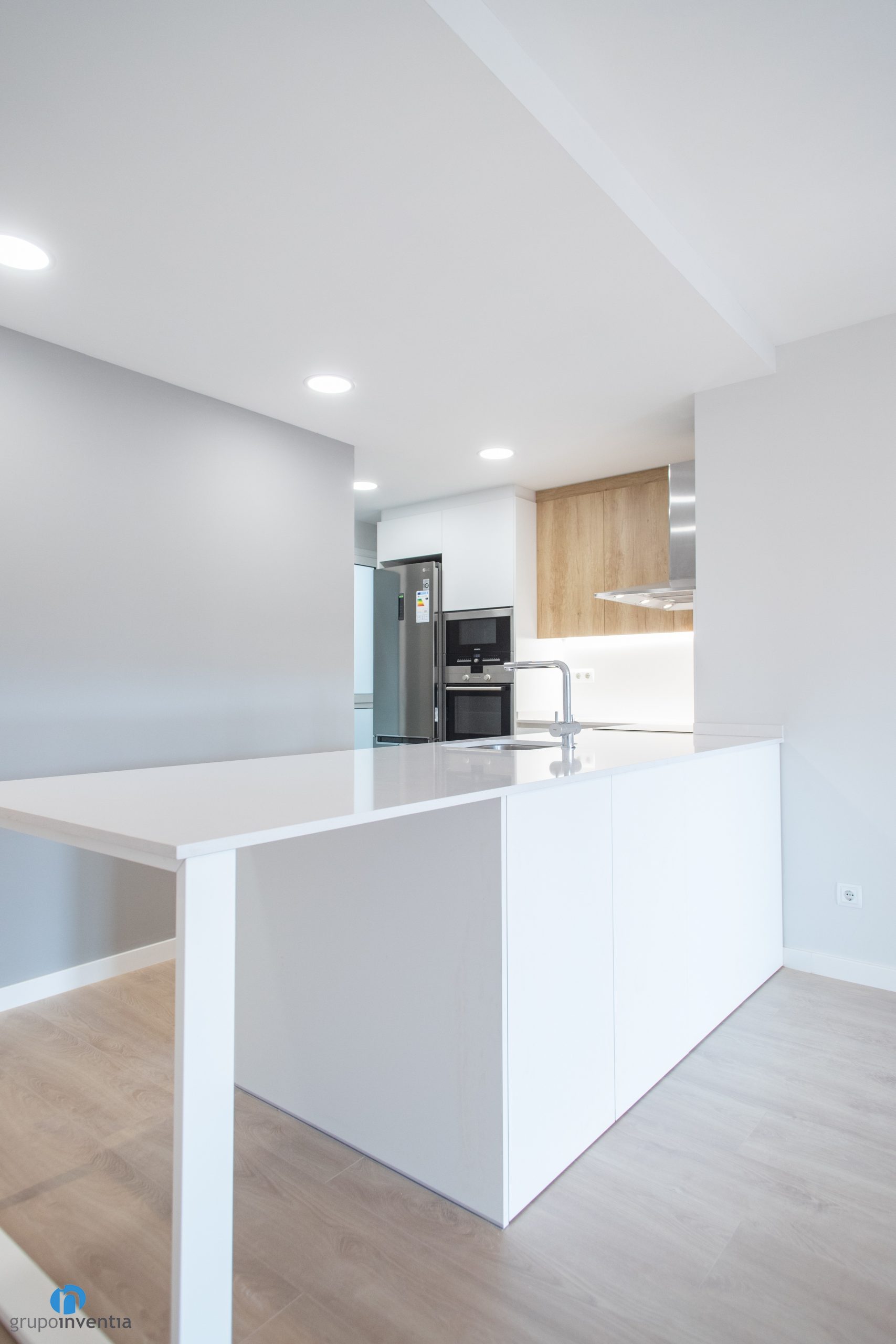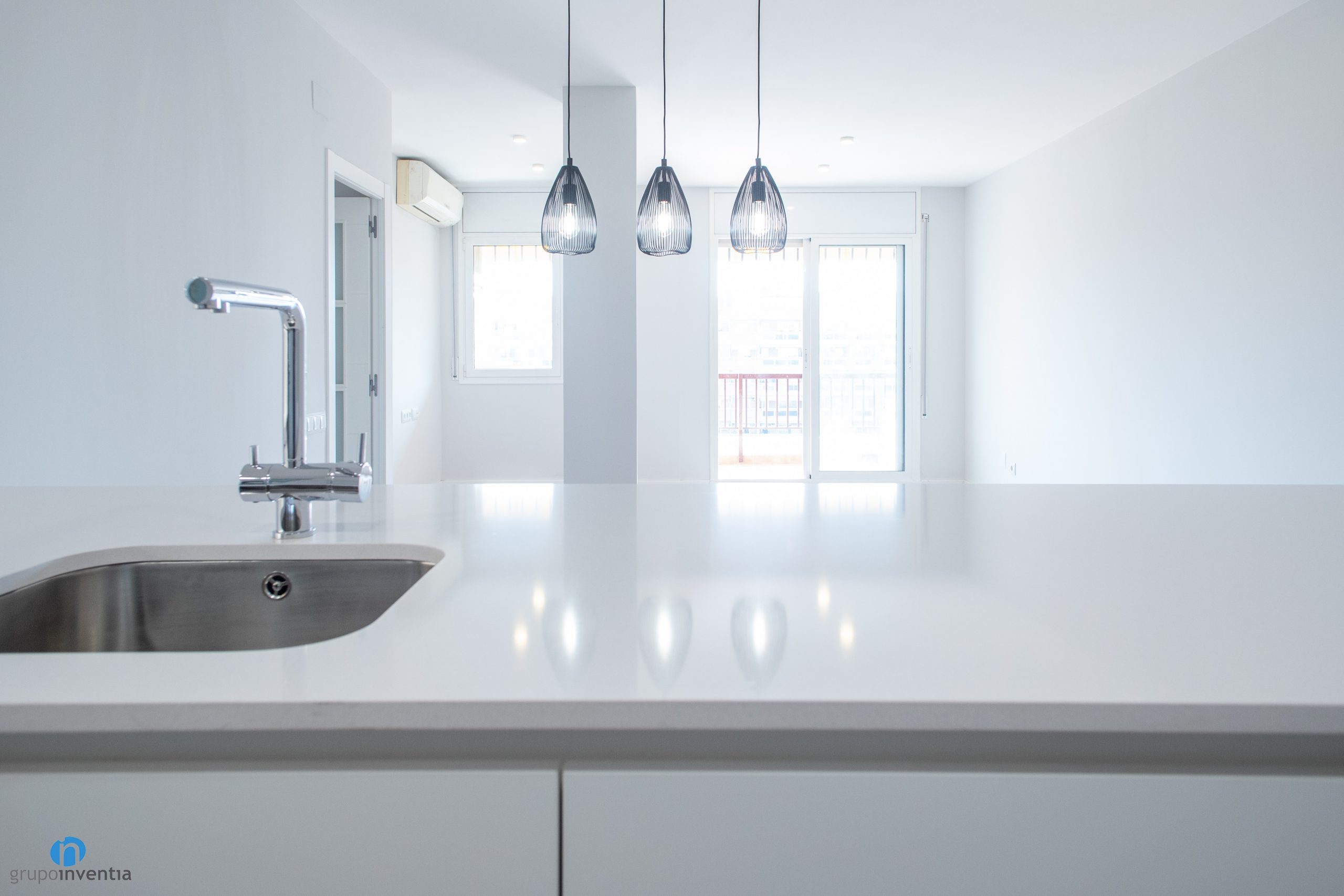 In Grupo Inventia we have been responsible for carrying out the house renovation of a house located on Batista i Roca street in Barcelona. A joint work between our interior design department and construction team. The result is a house renovation in which the image of all the spaces has been improved and both the kitchen and the bathroom have been fully equipped.