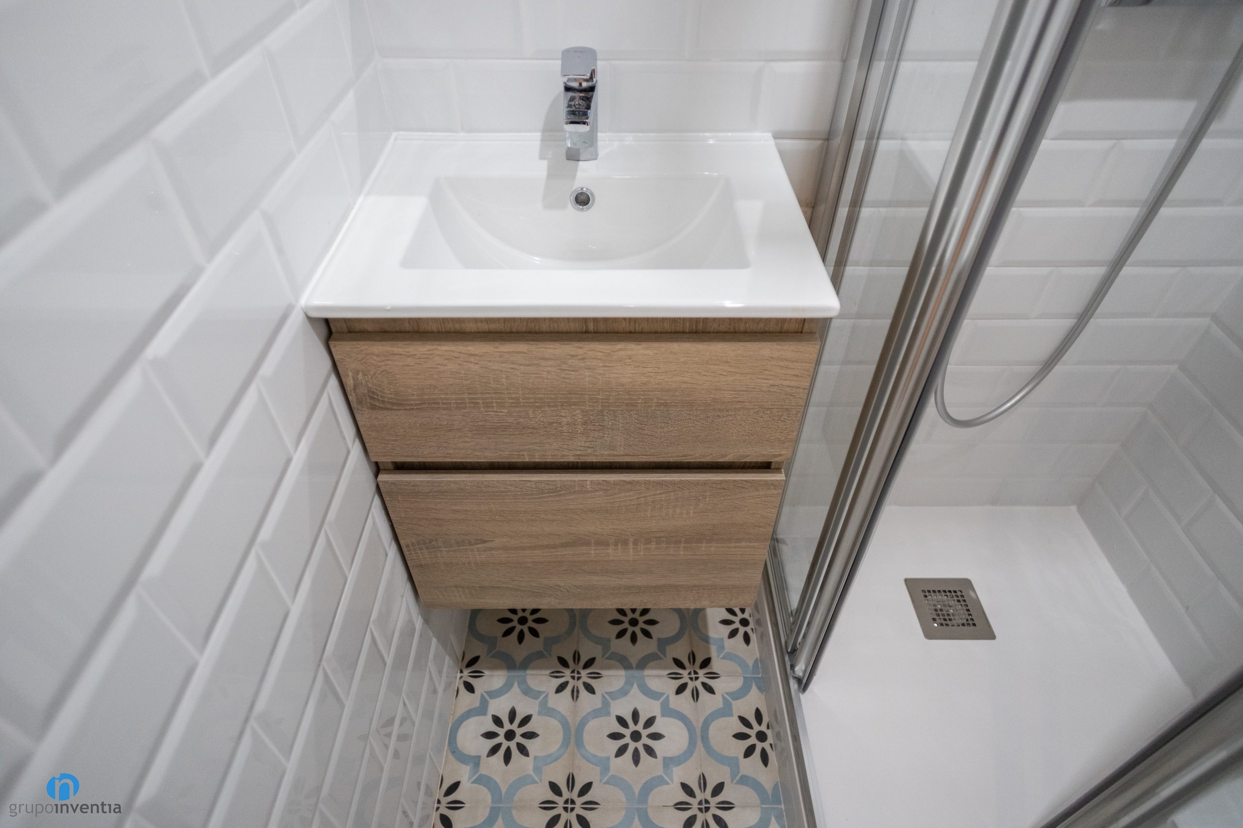In both cases, a complete three-piece sanitary equipment has been installed. One of them is the new sink with built-in storage furniture in its lower area. It is accompanied by a toilet and a water area. For the latter elements, in both cases, a shower tray has been chosen, which is protected by sliding door partitions.