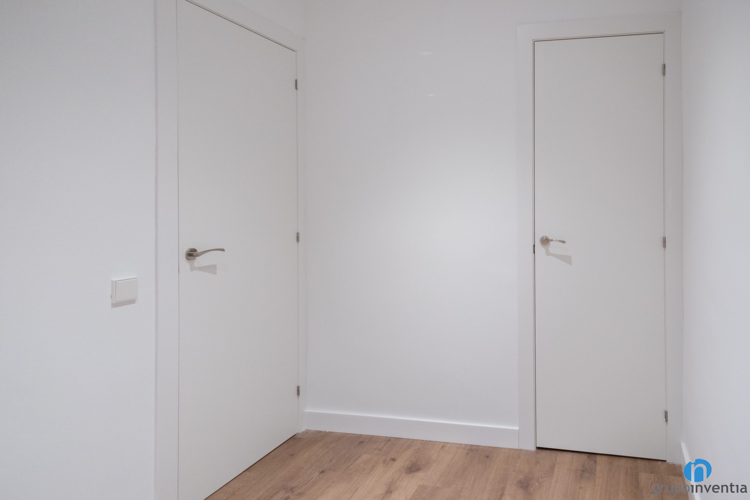 For this, the walls of this apartment have been painted white. Thus the light can flow through all the spaces in a natural way. New white doors have also been placed, as well as the frames and baseboards. In this way the image is much more homogeneous and linear. The original floor has also been changed for a parquet floor in medium wood tones.