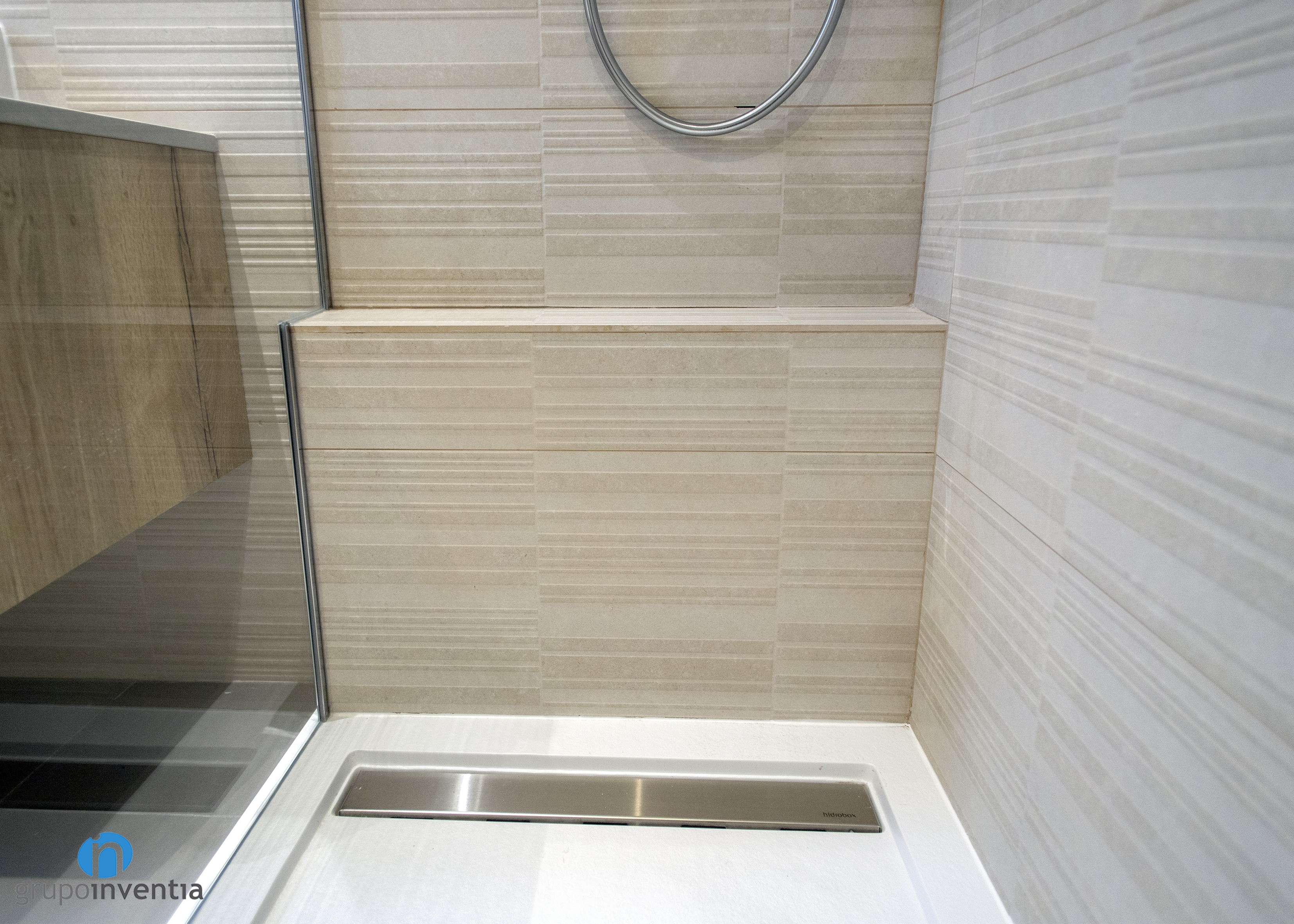 As for the interior design, he opted for a full tiled wall with beige tiles. This generates a very nice and cool atmosphere in both bathrooms. In turn, it gives rise to the introduction of other finishes, such as wood.