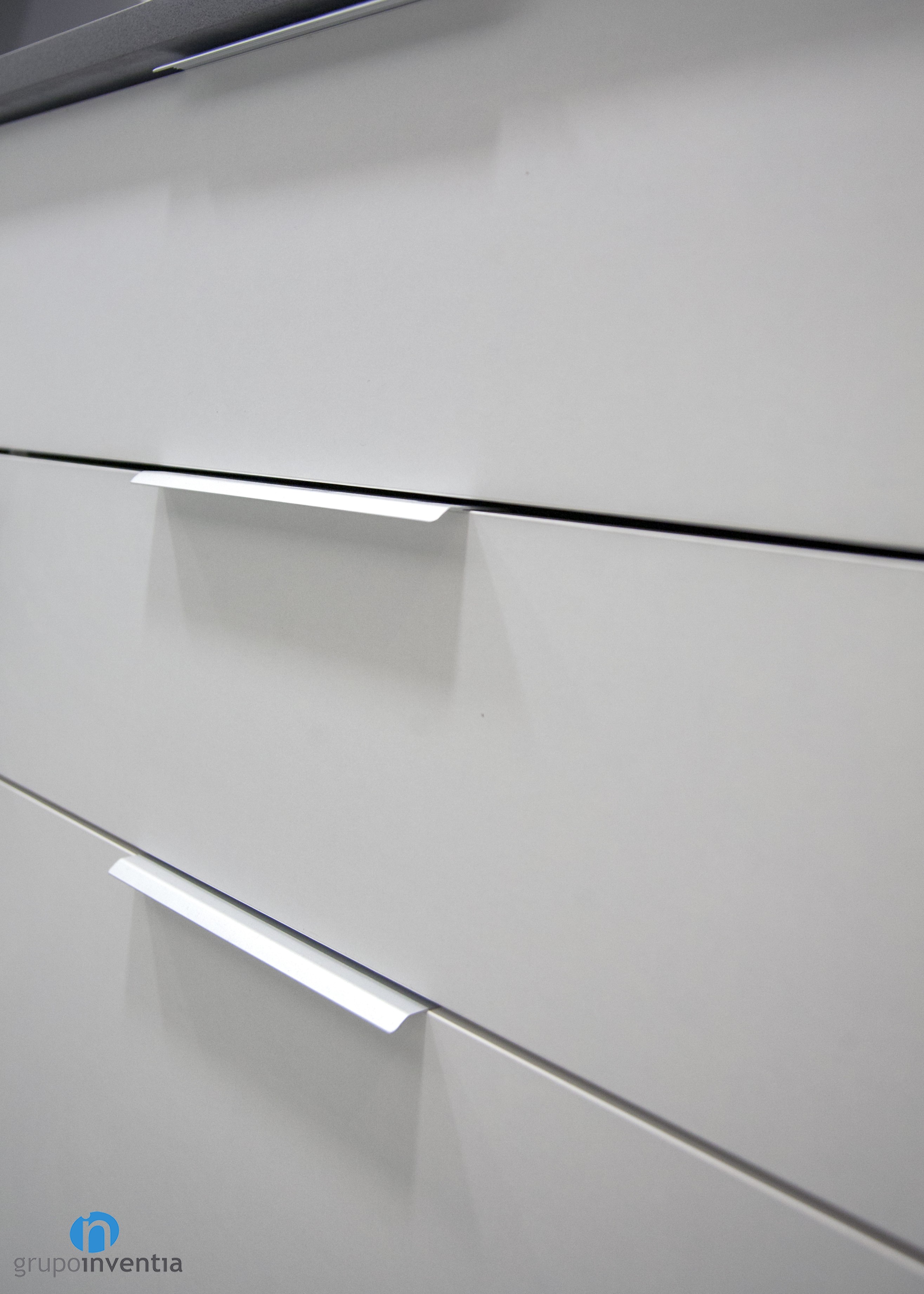 The left side is also occupied by a counter, on this occasion equipped with a sink of only one and with drawers and storage cabinets both in the lower and upper parts. At its end, a vacuum was made to measure the fridge, which will complement the new appliances of this kitchen reform.