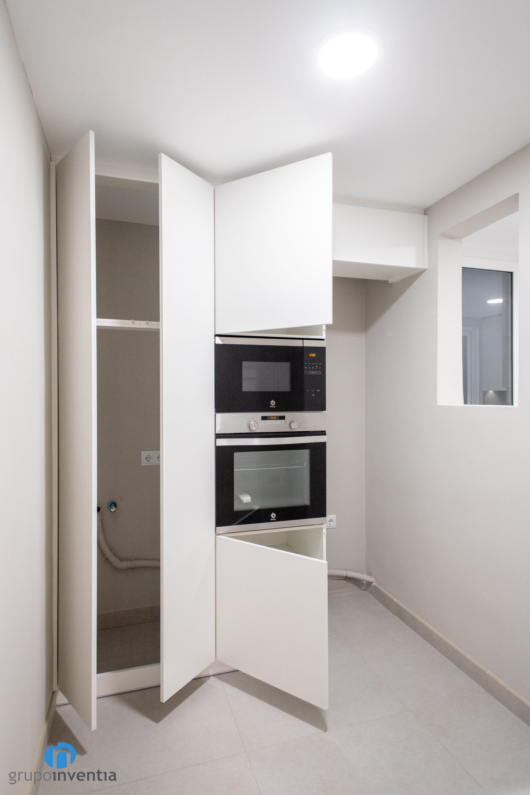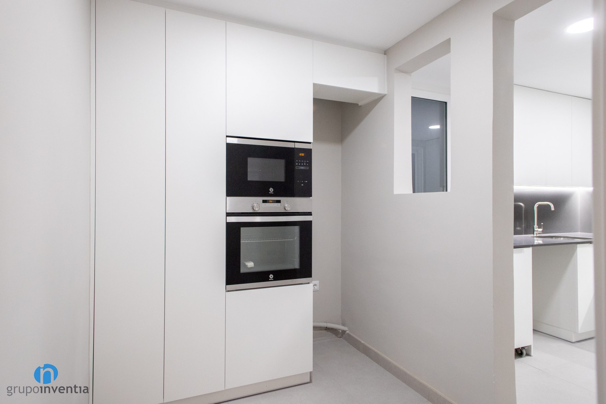 We have a kitchen renovation that occupies its own space and is distributed in an L-shape. Given the characteristics of the space available, this arrangement is the most effective. You get perfect mobility in the kitchen and every appliance is in the perfect place. In fact, bespoke holes have been arranged in the far left to integrate the appliances. They consist of oven, microwave and refrigerator.