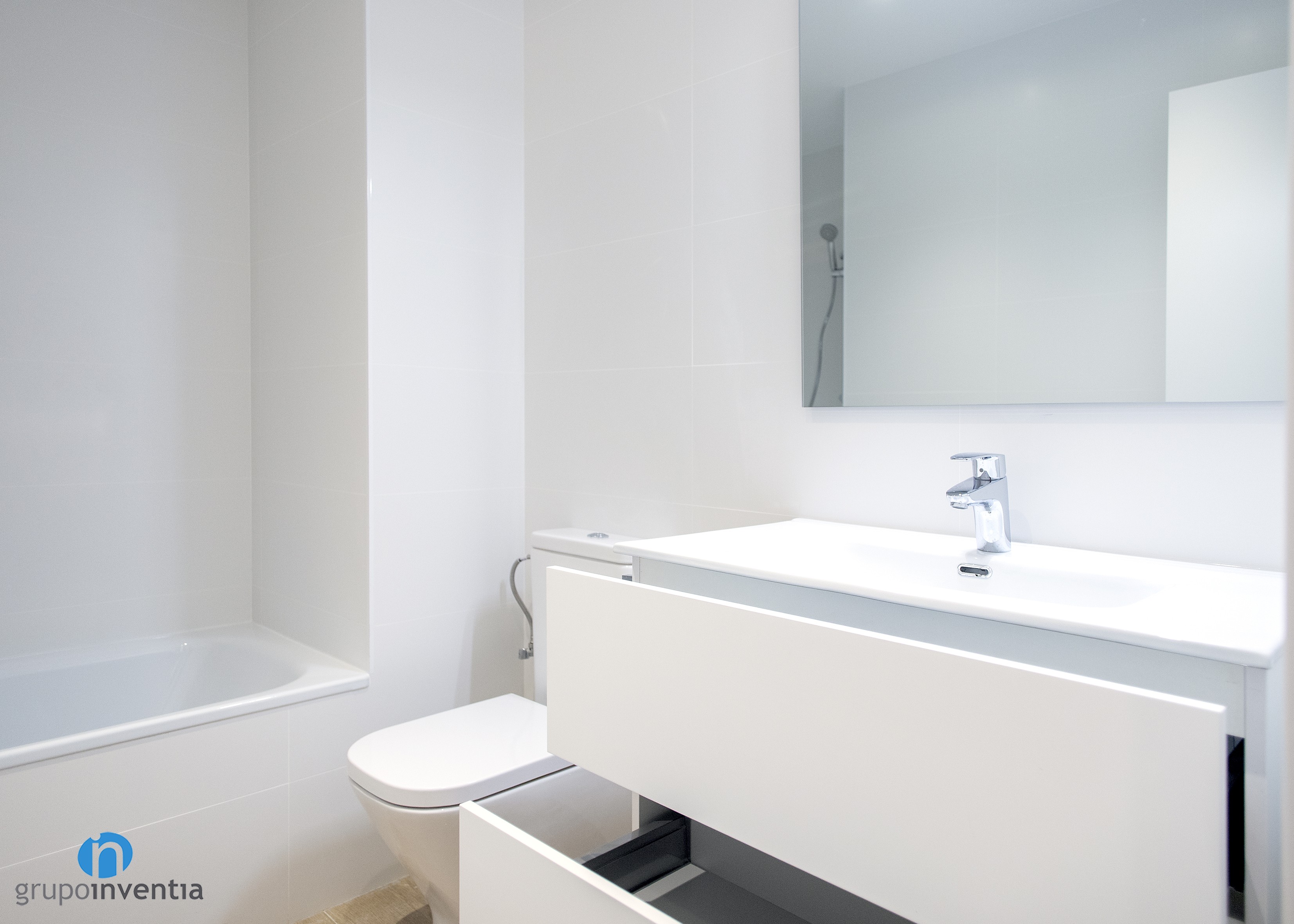 The property had two bathrooms and both were renovated and equipped completely. In both cases there is a sink with built-in storage furniture, a toilet and a water area. This last element varies, since in the main bathroom the bath was maintained and in the one of courtesy a shower plate was placed.