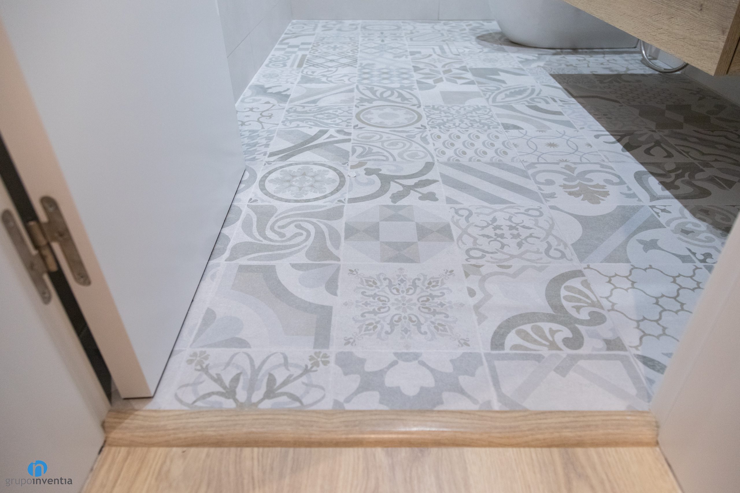 The image of this bathroom has also been adapted to the overall design of the house. The walls have been completely tiled with beige tiles. In this way you get a very bright bathroom with a greater feeling of spaciousness. The new bathroom floor is a hydraulic floor with a design that combines several shades of beige. A detail that adds a lot of personality to this bathroom renovation in Barcelona.